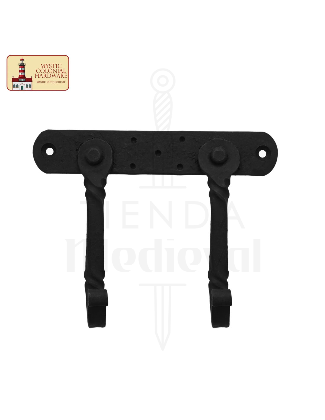 Met de hand gesmeed uit massief ijzer straalt hij stevigheid en duurzaamheid uit, terwijl de verouderde zwarte afwerking dat klassieke en middeleeuwse aspect versterkt dat karakter toevoegt aan ingangen, keukens of badkamers. Het gehamerde plaatwerk en de gedraaide details zijn niet alleen decoratief, maar garanderen ook stabiliteit en een ambachtelijke esthetiek die evolueert met gebruik.
