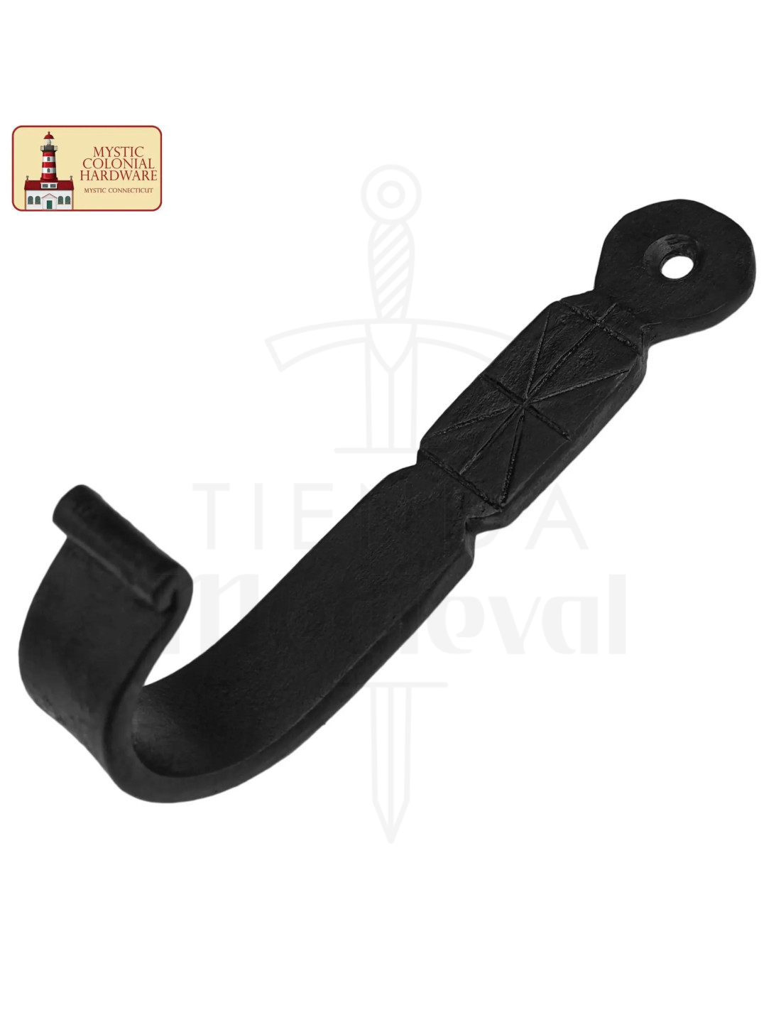 Deze haak straalt vanaf het eerste moment kracht uit dankzij het met de hand bewerkte ijzer, waardoor je gerust kunt zijn dat jassen, tassen en handdoeken moeiteloos en zonder vervorming hangen. De geoliede zwarte afwerking beschermt het oppervlak en geeft een verouderde uitstraling die perfect past bij ingangen, badkamers en keukens met een retrostijl.