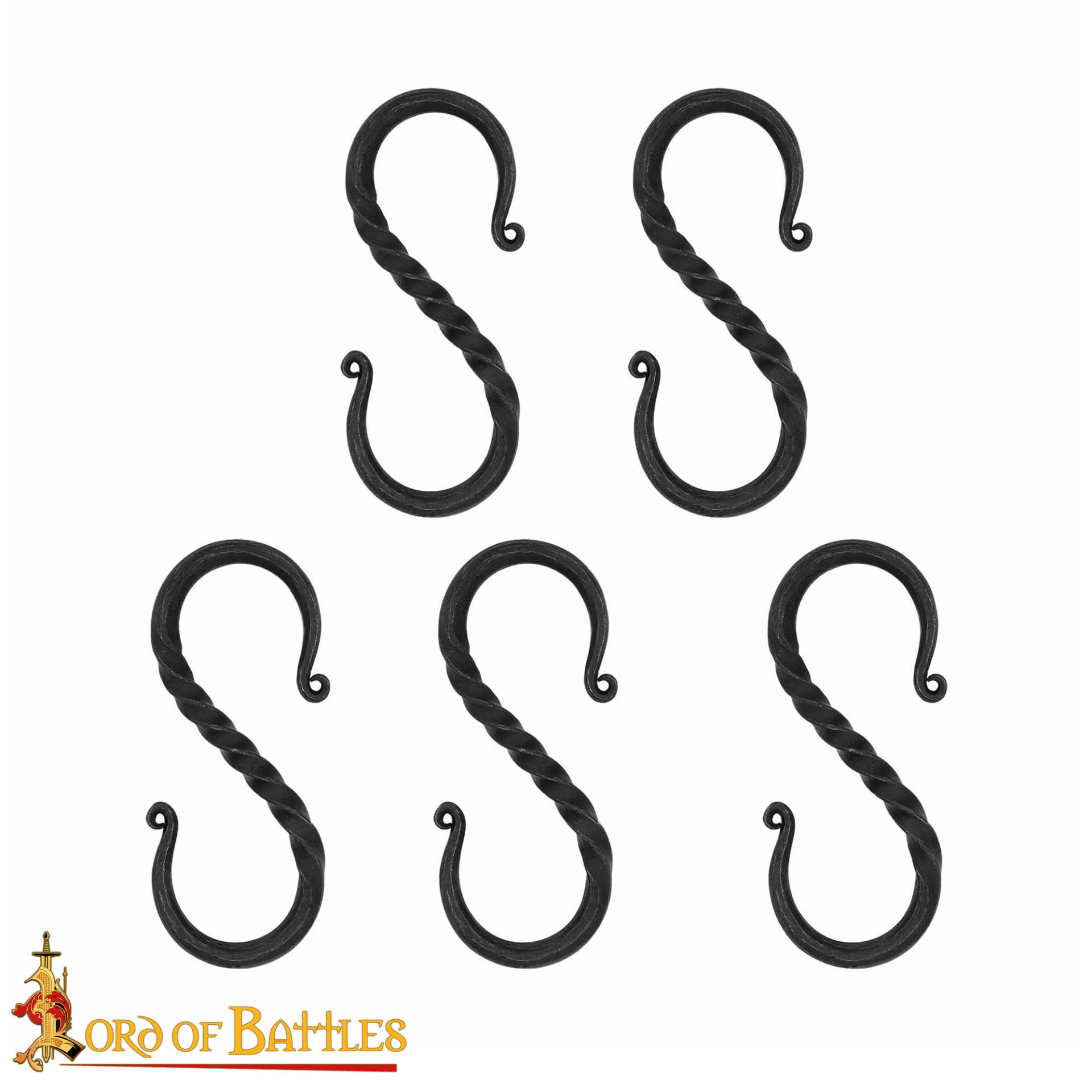 Set van 5 S-vormige ijzeren haakjes voor landelijke keuken (8x3,5 cm)