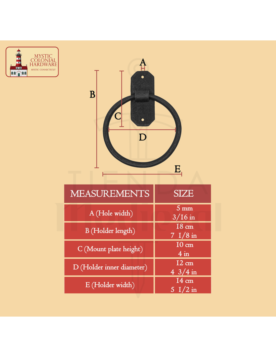 Deze vintage handgeschmeden ijzeren rustieke handdoekring transformeert dat moment in een dagelijkse ervaring en biedt een warme en robuuste uitstraling zonder in te boeten op functionaliteit. Gemaakt van massief ijzer met een verouderde zwarte afwerking, biedt het een authentieke sensatie die boerderij-achtige, gotische of koloniale omgevingen versterkt, waardoor handdoeken en doeken onderdeel van de decoratie lijken en niet alleen utilitaire objecten.