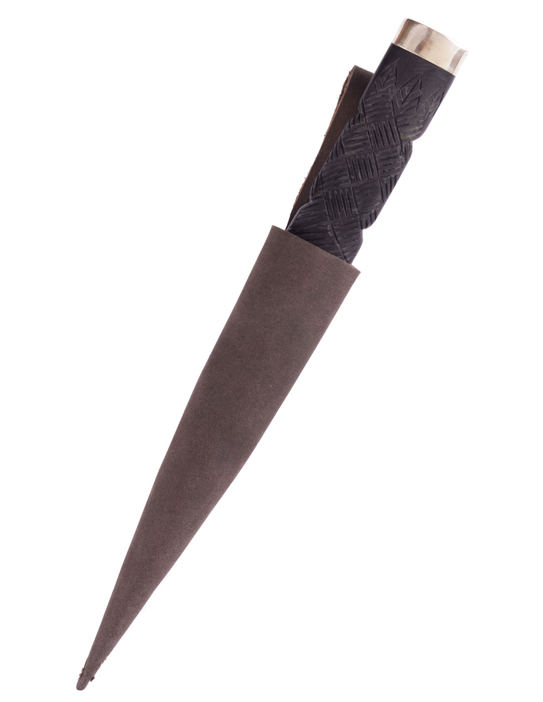 Ben je gepassioneerd door de Schotse cultuur en geschiedenis, dan is ons Sgian Dubh damascus mes Schots mes precies wat je zocht. Dit kleine mes is met de hand gesmeed uit een mes van Damascus-staal, waardoor het een unieke uitstraling en uitzonderlijke kwaliteit heeft. De Sgian Dubh wordt al eeuwenlang in de Schotse cultuur gebruikt en maakt al lange tijd deel uit van de traditionele herenkleding. Dit mes, ook wel 'kousendolk' genoemd, wordt op de rechterkous gedragen, waarbij alleen het bovenste deel van het handvat zichtbaar blijft. Oorspronkelijk gebruikt voor ceremoniële doeleinden, maakt dit mes sinds de 18e eeuw deel uit van de basisuitrusting van elke Highland Scotsman.
