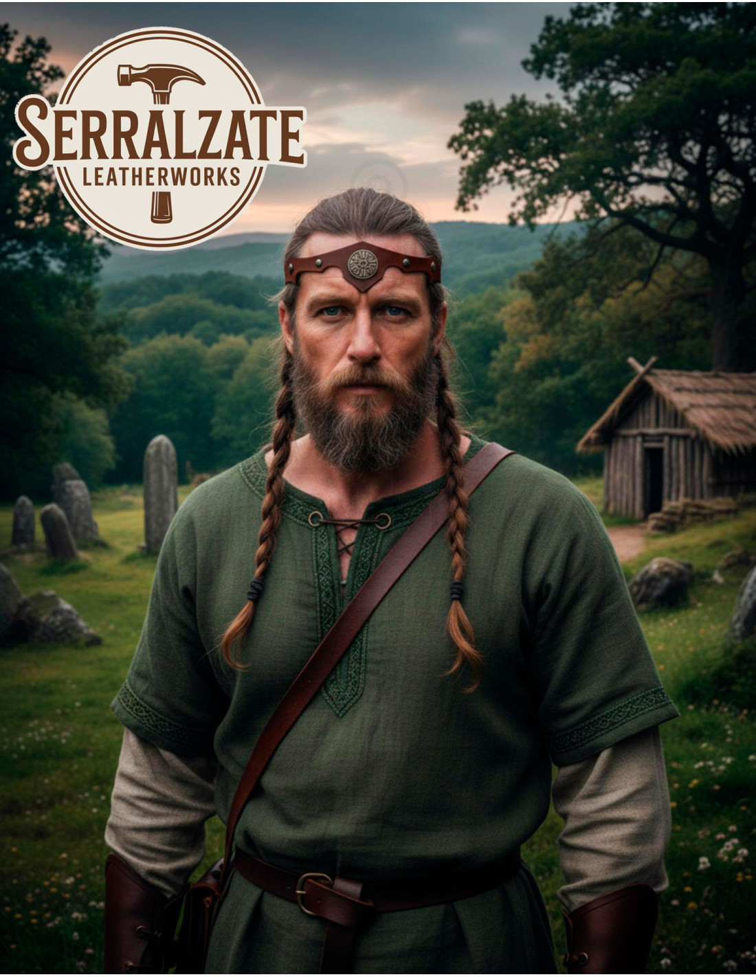 Het ontwerp beschermt het voorhoofd met die verfijnde elegantie die wordt toegevoegd door het metalen ornament met Keltische motieven en klinknagels, waardoor details worden benadrukt die de geschiedenis en traditie weerspiegelen. Ideaal voor mensen die houden van accessoires met karakter en spirit. De verstelbaarheid aan de achterkant, via een leren koord, zorgt voor optimaal comfort en een persoonlijke pasvorm, waardoor het geschikt is voor verschillende gelegenheden.