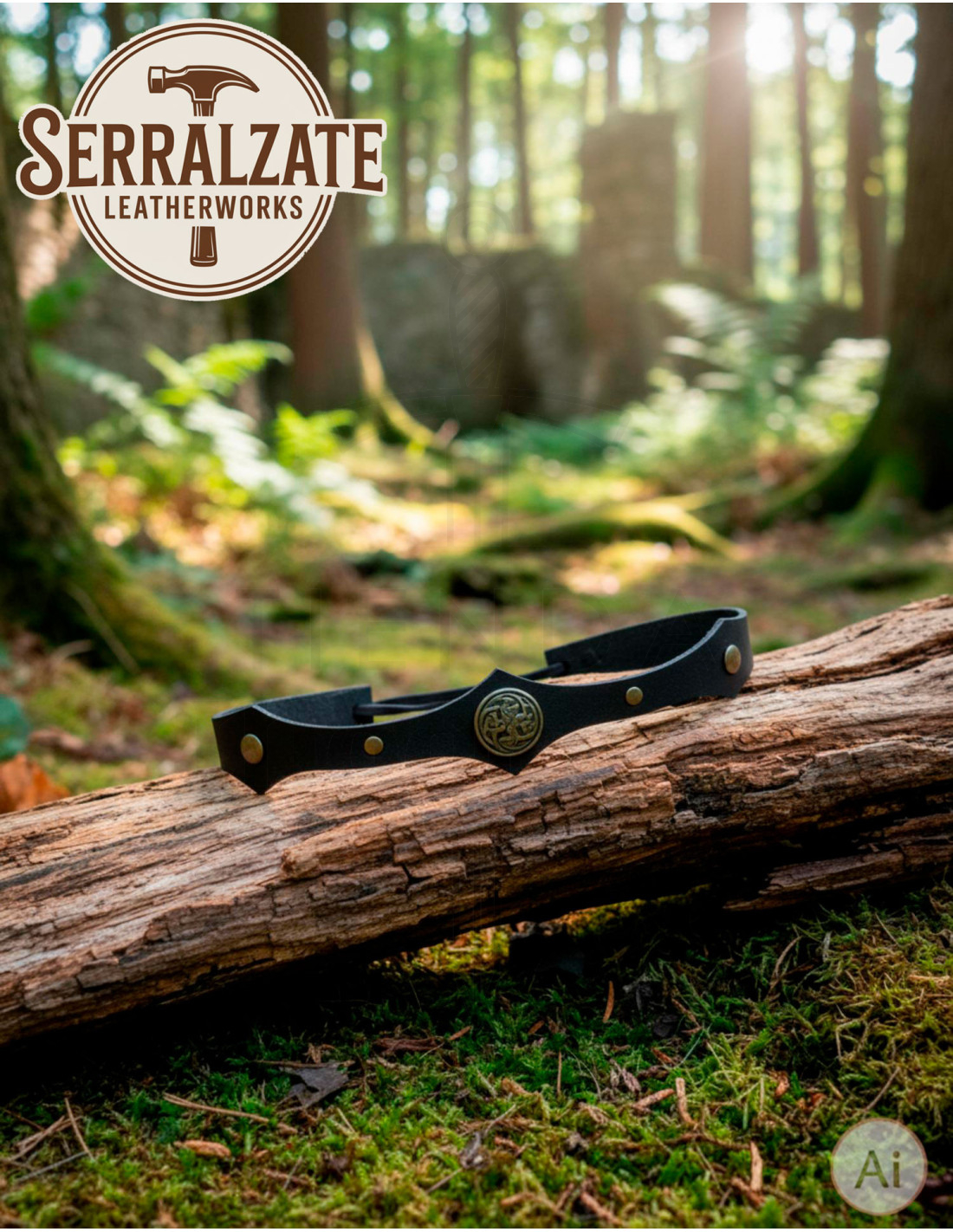 Druk jezelf uit met een vleugje geschiedenis en oud symbolisme met deze elegante Viking-Celtische tiara, ontworpen in hoogwaardig zwart leer door ervaren ambachtslieden in Spanje. Perfect voor wie houdt van gedetailleerde versieringen en een stijl die traditie combineert met karakter.