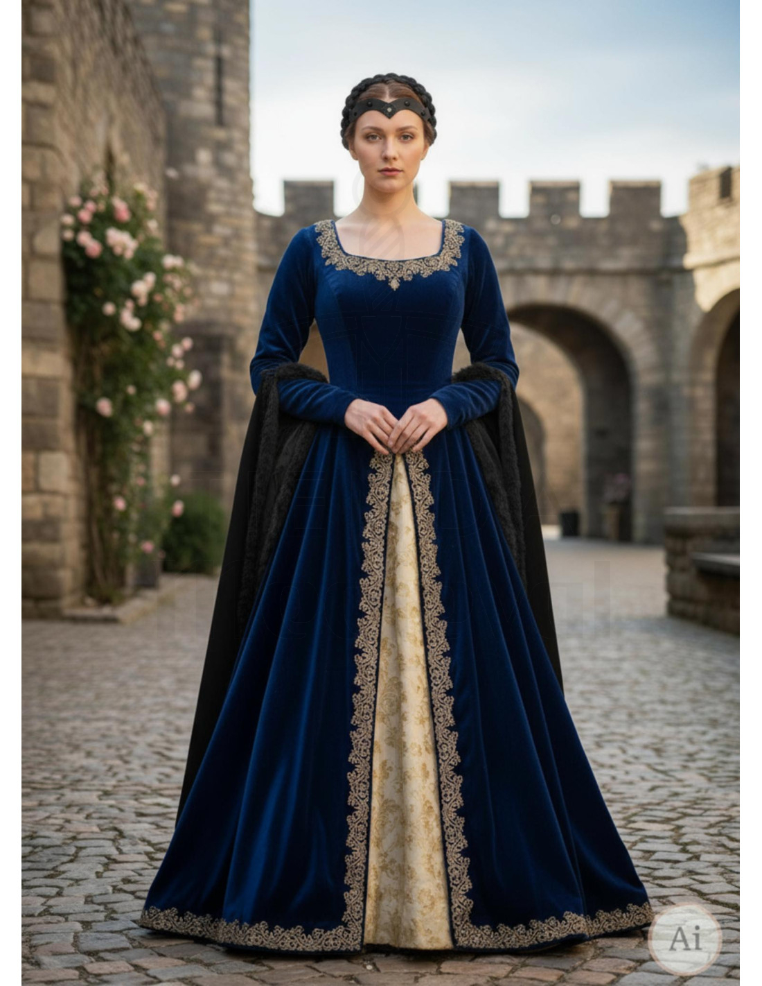 Ben je op zoek naar een vleugje middeleeuwse elegantie die je kunt aanpassen aan jouw stijl? De middeleeuwse tiara Florian in zwart is de perfecte keuze voor wie een authentieke en ambachtelijke afwerking in elk detail wil. Het veelzijdige ontwerp past zich gemakkelijk aan dankzij een praktische leren knoop aan de achterkant, wat zorgt voor comfort en een perfecte pasvorm zonder gedoe.
