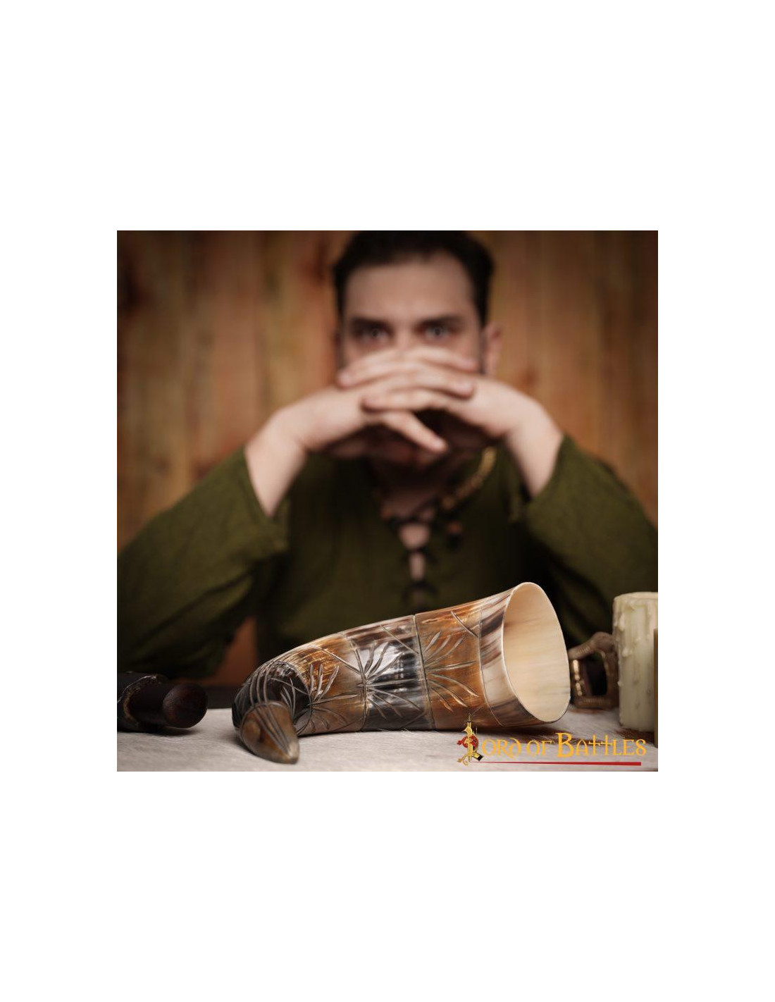 Mis je kans niet om deze buitengewone Viking-drinkhoorn met gegraveerde ontwerpen te kopen! Bovendien wordt hij geleverd met een praktische tas, zodat je hem jarenlang moeiteloos kunt verzorgen en beschermen. Het is niet alleen een echte schat voor jou, maar ook een ideaal cadeau voor je dierbaren. Verras ze met een origineel en gedenkwaardig detail dat hen sprakeloos zal maken.