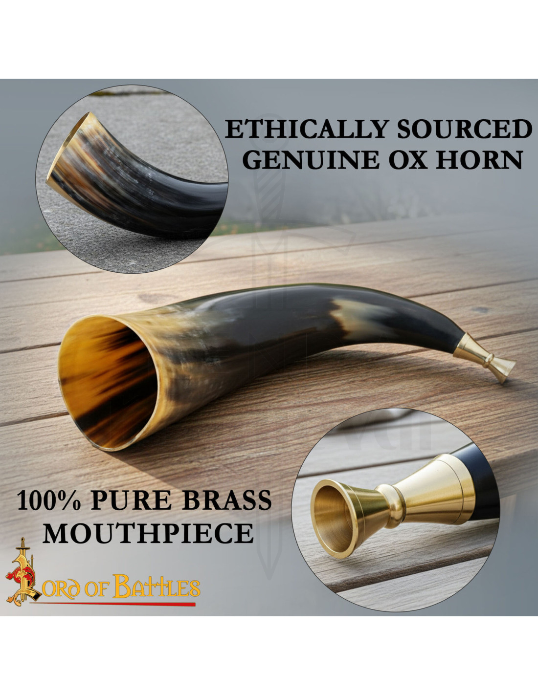 Samenvattend is de Vikingtrompet met Massief Messing Mondstuk een authentiek en veelzijdig accessoire dat de authenticiteit van je Vikingoutfit kan verhogen en een interessant muzikaal element kan toevoegen aan je thematische evenementen. De combinatie van ethisch verkregen hoorn en massief messing mondstuk maakt het een aantrekkelijke optie voor degenen die kwaliteit en authenticiteit in hun Vikingaccessoires zoeken.