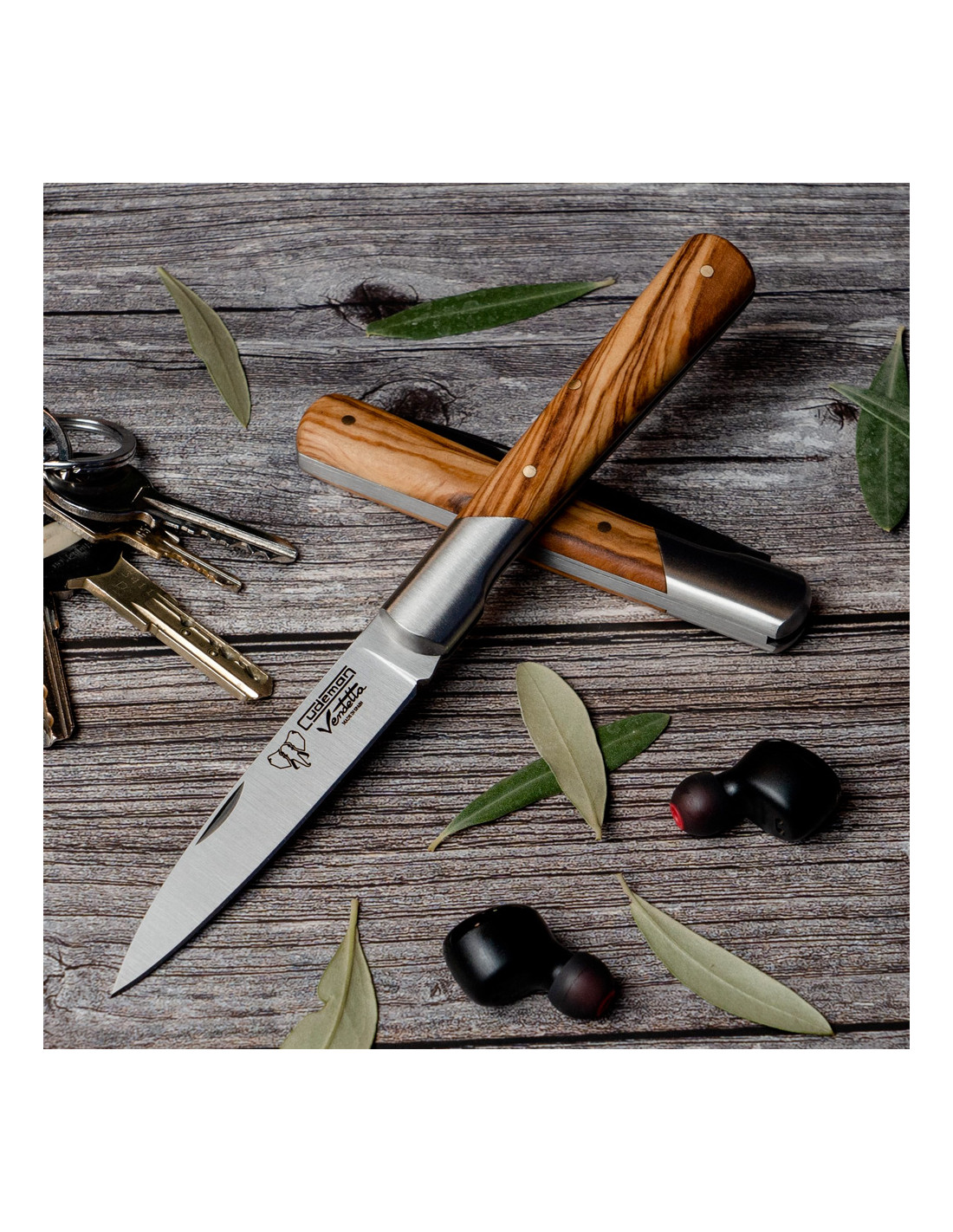 Het olijfhouten handvat van dit scheermes geeft het niet alleen een natuurlijke en elegante uitstraling, maar ook een comfortabele en veilige grip. Met een lengte van 20 cm is dit mes veelzijdig en betrouwbaar bij al je werkzaamheden.