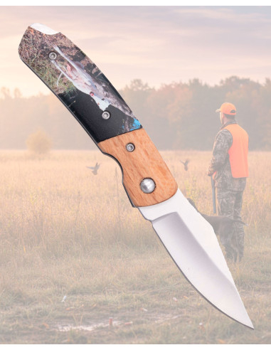 Mes van het derde merk met 3D herten gedecoreerd handvat (15,9 cm.)