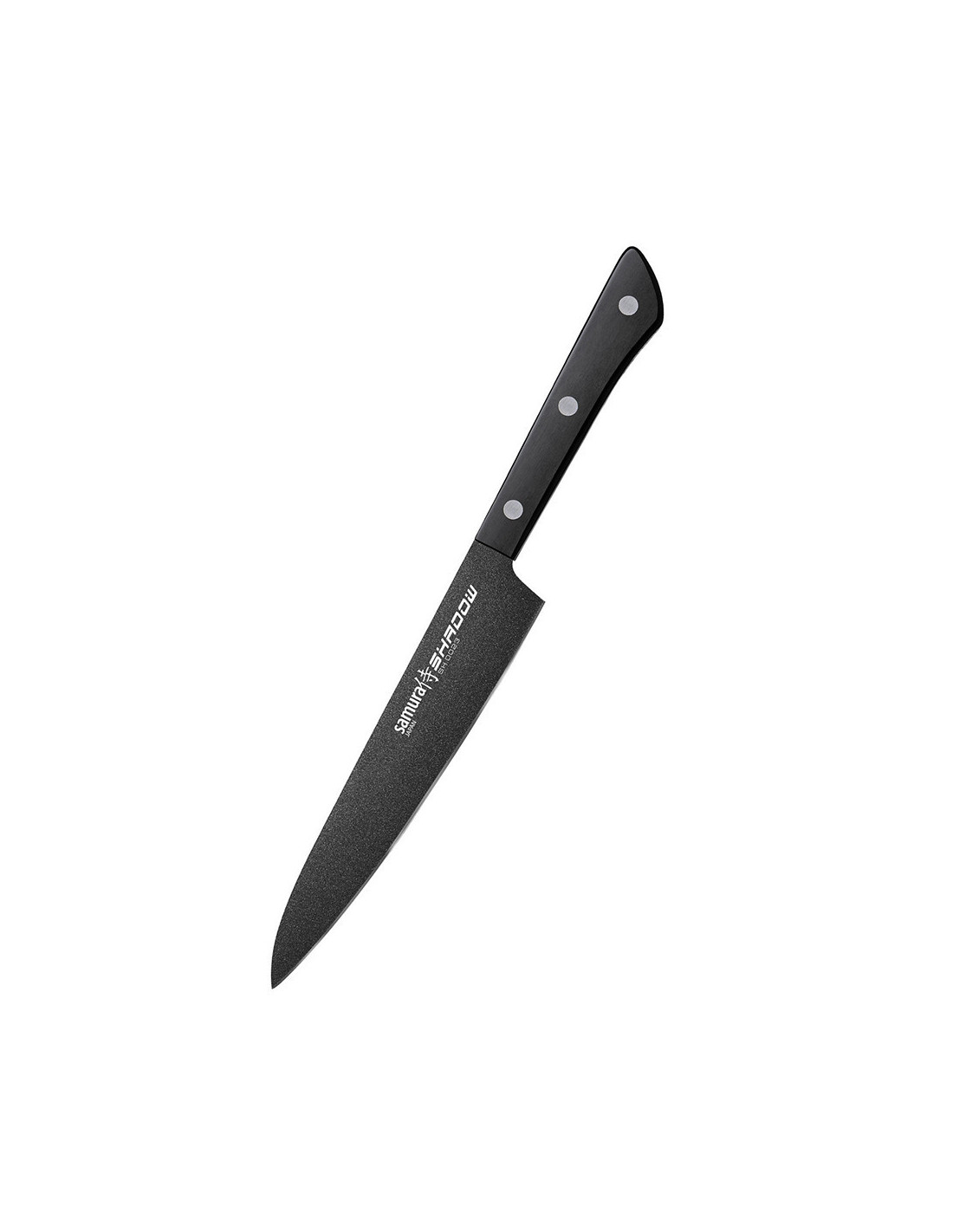 Ontdek het Samura Shadow-mes voor groenten, een uitzonderlijk hulpmiddel dat is ontworpen om uw culinaire taken te vergemakkelijken. Met een lemmet van 150 mm is dit mes perfect voor het snijden en bereiden van een grote verscheidenheid aan groenten.