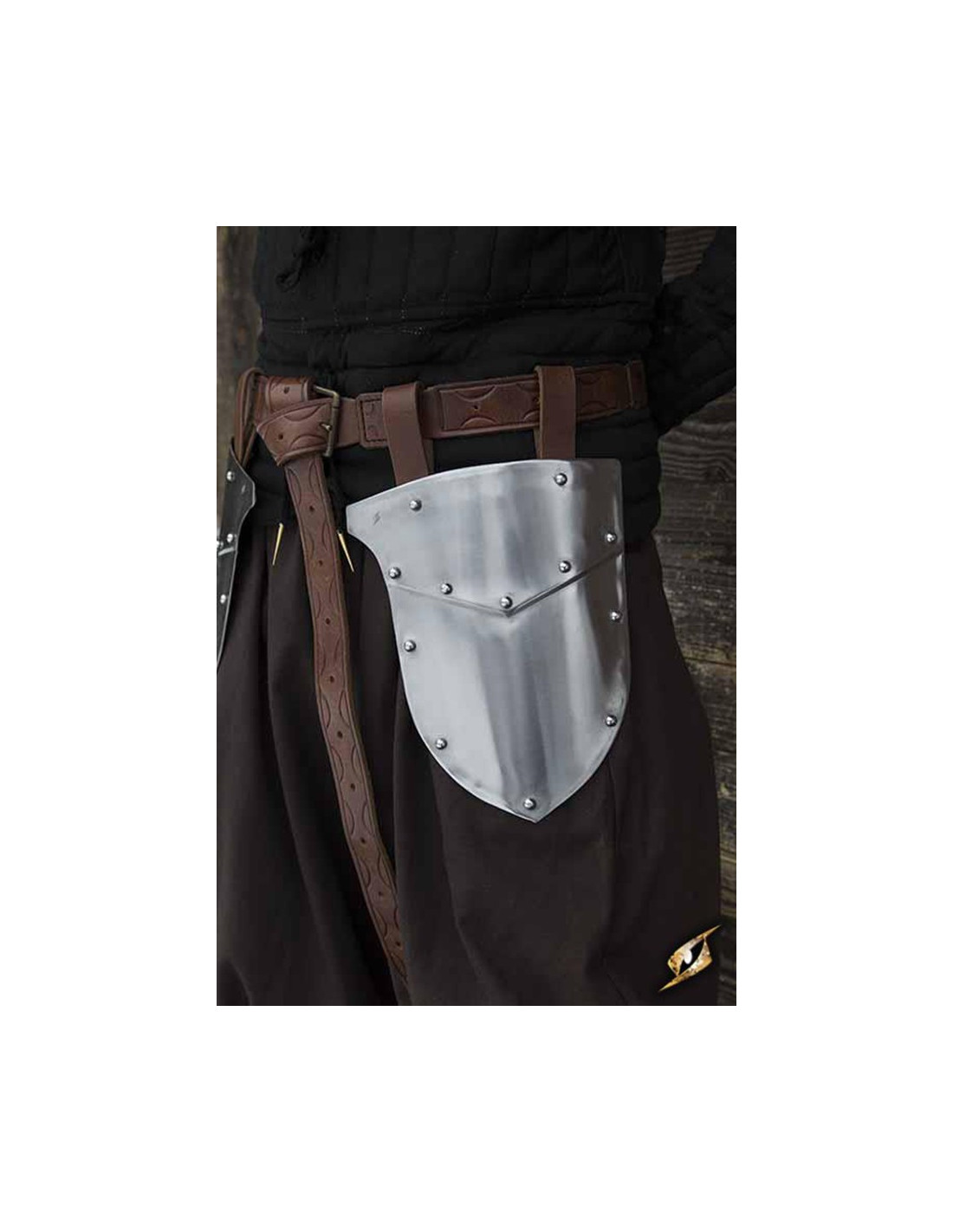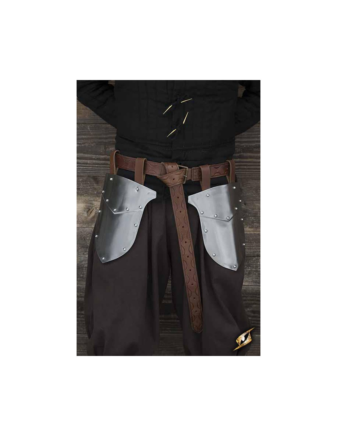 Deze pads zijn gemaakt van twee hoogwaardige stalen platen, speciaal ontworpen om de buitenkant van de dijen te beschermen. De gepolijste afwerking geeft ze een elegante en opvallende uitstraling, waardoor ze een onmisbaar accessoire zijn voor elk middeleeuws of fantasiekostuum.