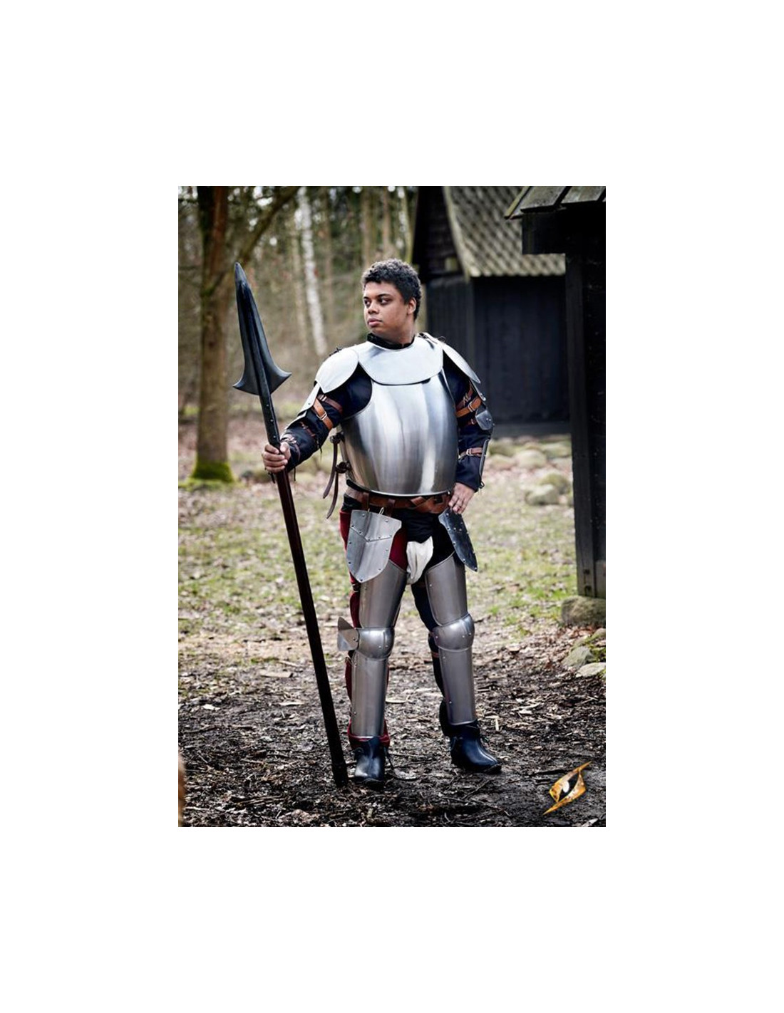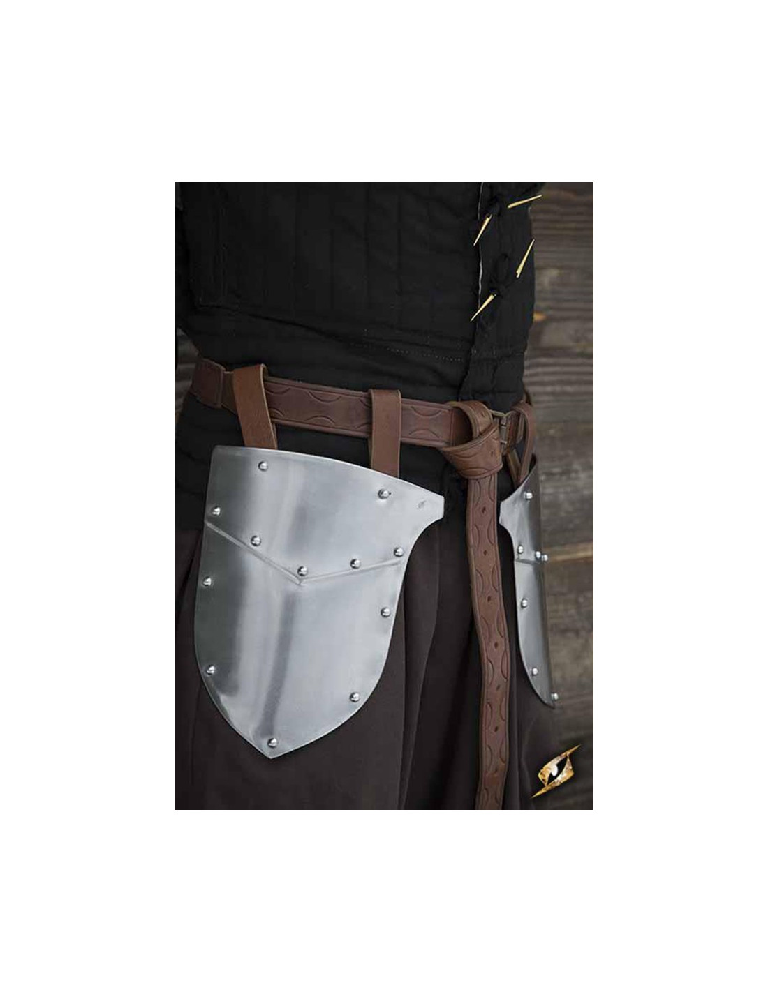 De middeleeuwse kwasten van de krijger hebben bruine leren lussen die stevig vastgeklonken zijn, zodat ze tijdens het gevecht op hun plaats blijven. Bovendien is elke beschermer ideaal 26 cm lang en 22 cm breed, wat een optimale dekking biedt zonder de mobiliteit in gevaar te brengen.