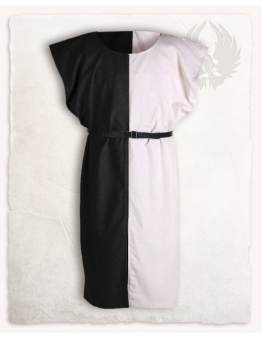Maak je innerlijke krijger wakker met onze tweekleurige zwart-crème Ignaz model tabberd! Deze indrukwekkende tabberd is een must-have voor soldaten en bewakers. Het tweekleurige ontwerp in zwart en crème zorgt er niet alleen voor dat je opvalt, maar geeft je ook een unieke en krachtige visuele identiteit.