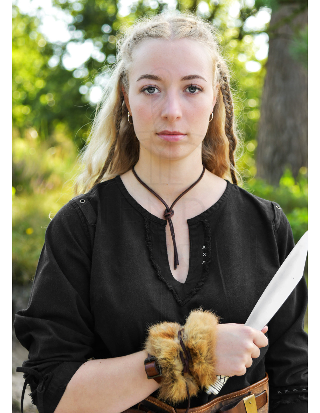Ideaal voor het recreëren van Noordse of middeleeuwse personages, in combinatie met leren accessoires en eenvoudige kleding, kun je een overtuigend uiterlijk aannemen als krijger, jonkvrouw of ontdekkingsreiziger. Of je nu deelneemt aan LARP-evenementen, historische reconstructies of themamarkten, deze tuniek nodigt je uit om een ervaring vol geschiedenis en avontuur te beleven, en een blijvende indruk achter te laten bij iedereen die je ziet.