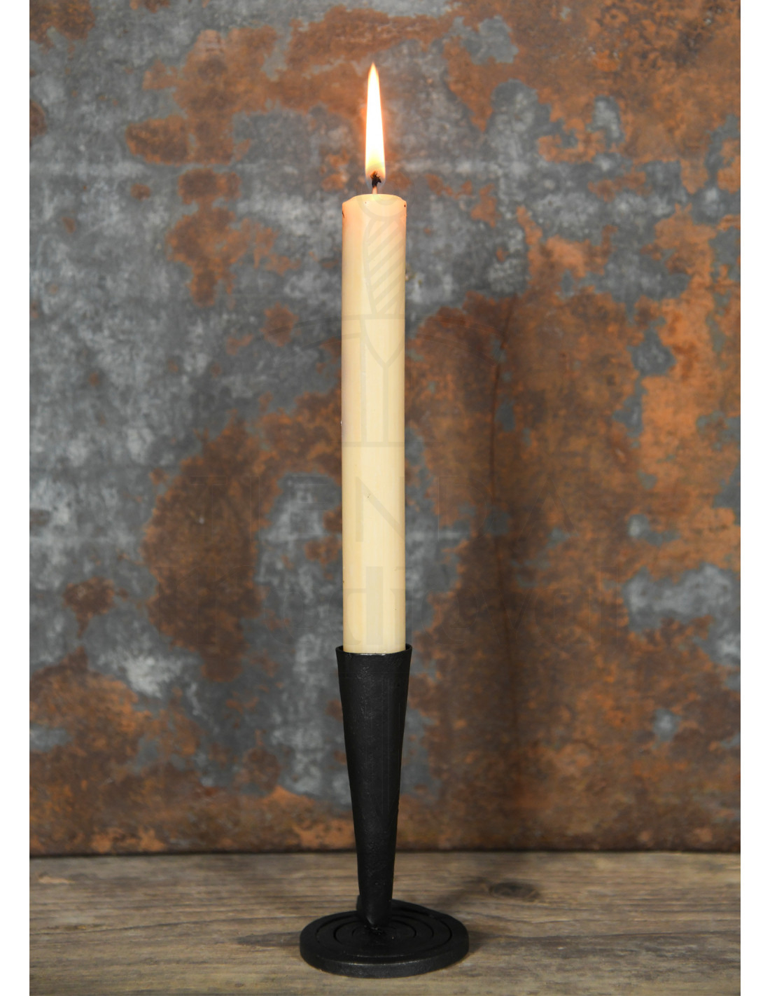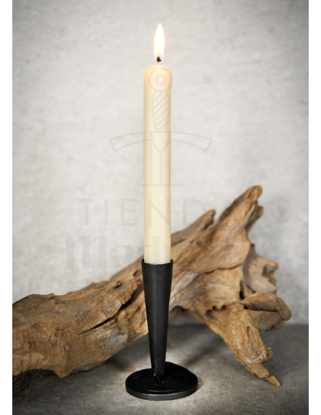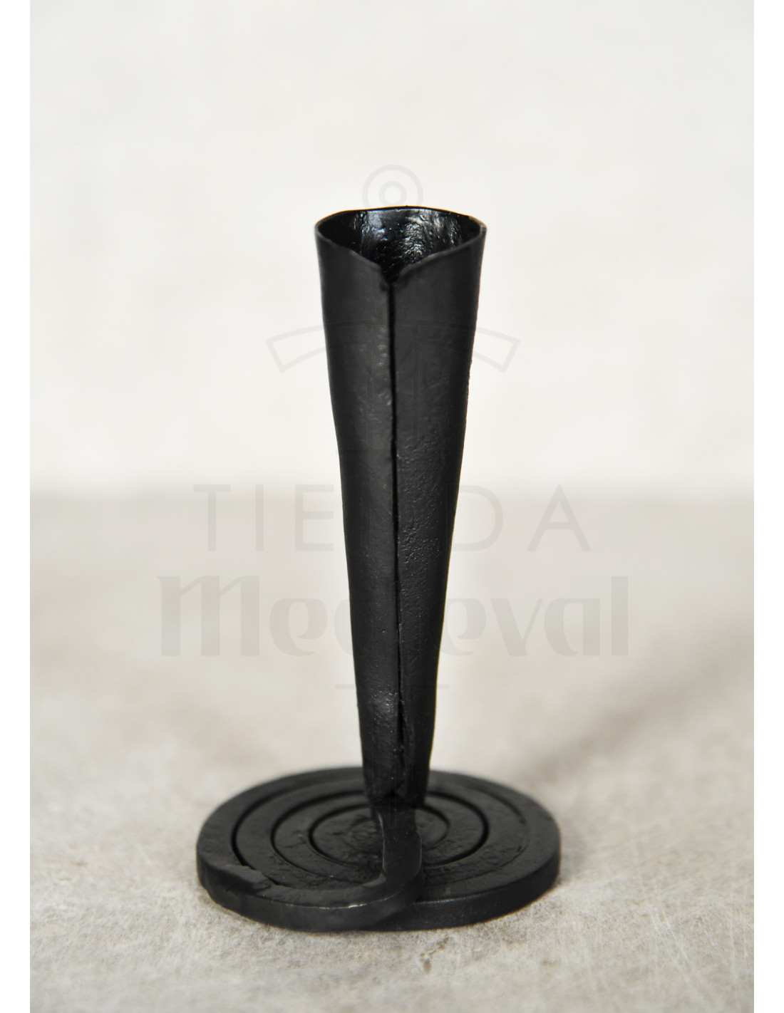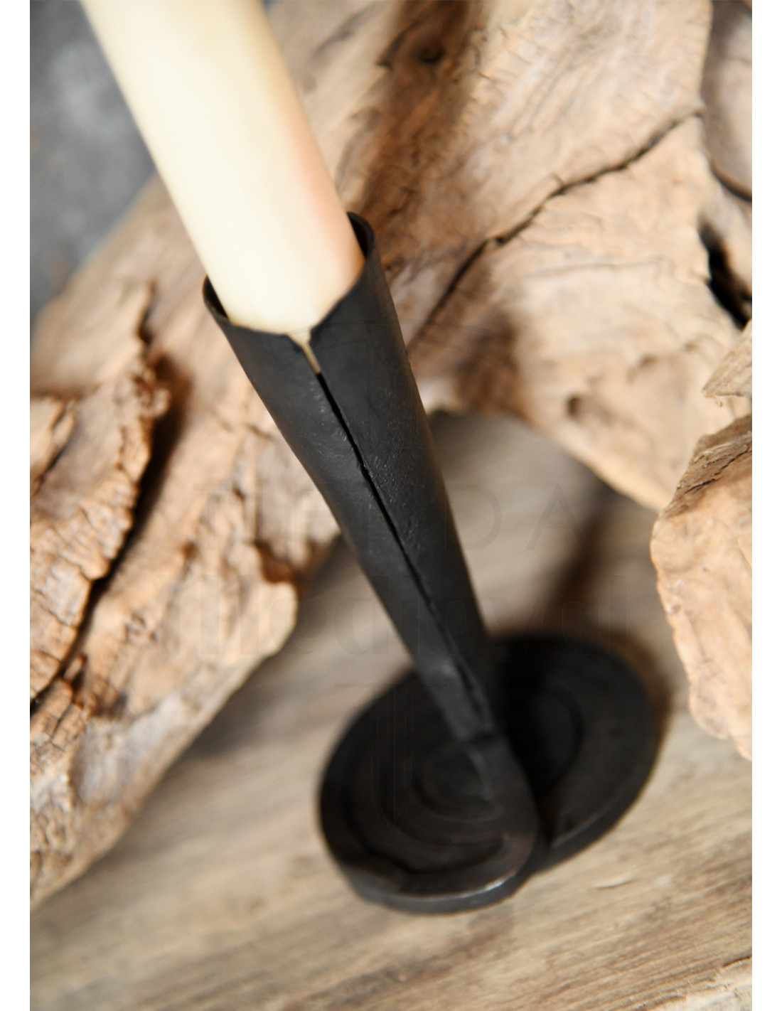 De spiraalvormige basis geeft niet alleen een onderscheidend en elegant uiterlijk, maar zorgt ook voor uitstekende stabiliteit, zodat je met volle vertrouwen kaarsen kunt plaatsen. Ontworpen voor kegelvormige kaarsen met een diameter van ongeveer 2,3 cm, is het perfect om warme en gezellige sferen te creëren in je huis, op middeleeuwse evenementen, historische markten of tijdens LARP-sessies. De structuur van de kandelaars, met zijn abstracte en minimalistische vorm, combineert traditie en moderniteit en spreekt degenen aan die decoratie met ziel waarderen.