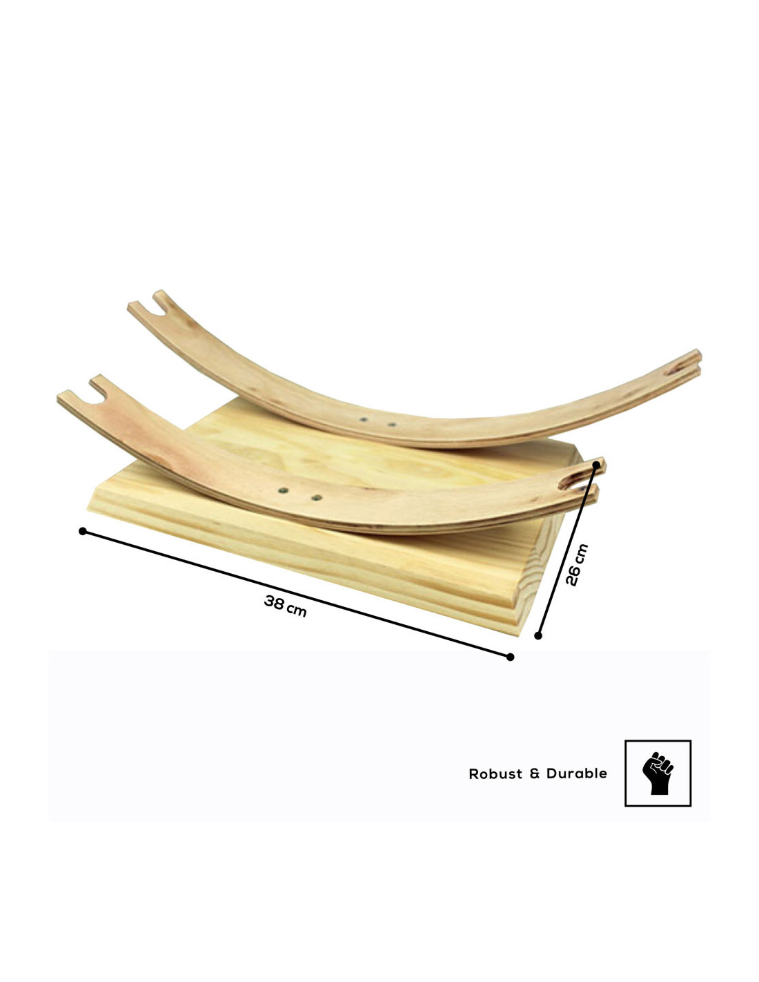 Dit is de eerste variant van ons nieuwe standdesign in natuurlijke houtkleuren. De steun is gemaakt van gelakt echt grenen. De bodemplaat van de dubbele steun meet 26x38 cm.