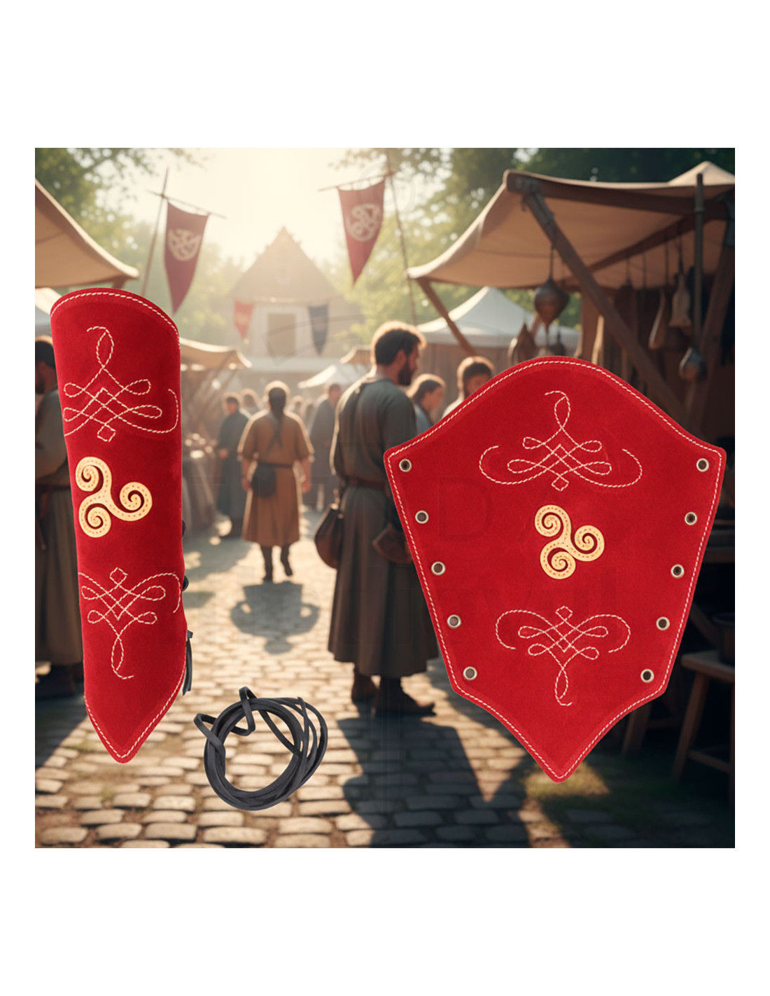 Het unieke ontwerp van de Nyara beschikt over een verlenging aan de achterkant van de hand, wat niet alleen een onderscheidend accent geeft, maar ook beschermt en een vleugje verfijning toevoegt. De verfijnde afwerking en fijne decoraties verrijken hun uiterlijk, waardoor ze een visueel aantrekkelijk accessoire zijn. Een van de opvallendste elementen is de artistiek ontworpen triskele, die zorgvuldig in het midden van de armbanden is gestikt en beweging en groei symboliseert, en een bijzonder karakter aan elk stuk geeft.