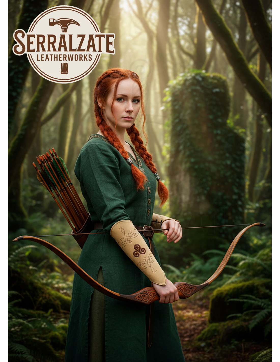 Wij presenteren de leren boogschutterarmbanden van lichtbruin suède, model Nyara, een uitzonderlijk stuk van het Spaanse merk Serralzate LeatherWorks, dat uitblinkt door zijn nauwgezette aandacht voor details. Deze armbanden zijn gemaakt van zacht suède, wat zorgt voor uitzonderlijk comfort, ideaal voor langdurig gebruik tijdens diverse activiteiten.