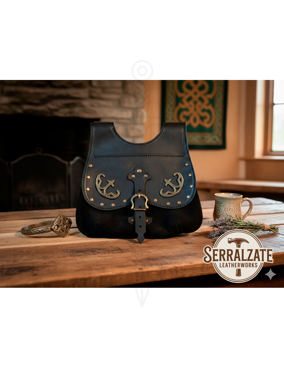 Wil je een ambachtelijke tas kopen die stevig is en een middeleeuws-Keltisch charme uitstraalt? Deze Gareth tas in zwart is jouw perfecte keuze om op te vallen met authenticiteit en onderscheid.