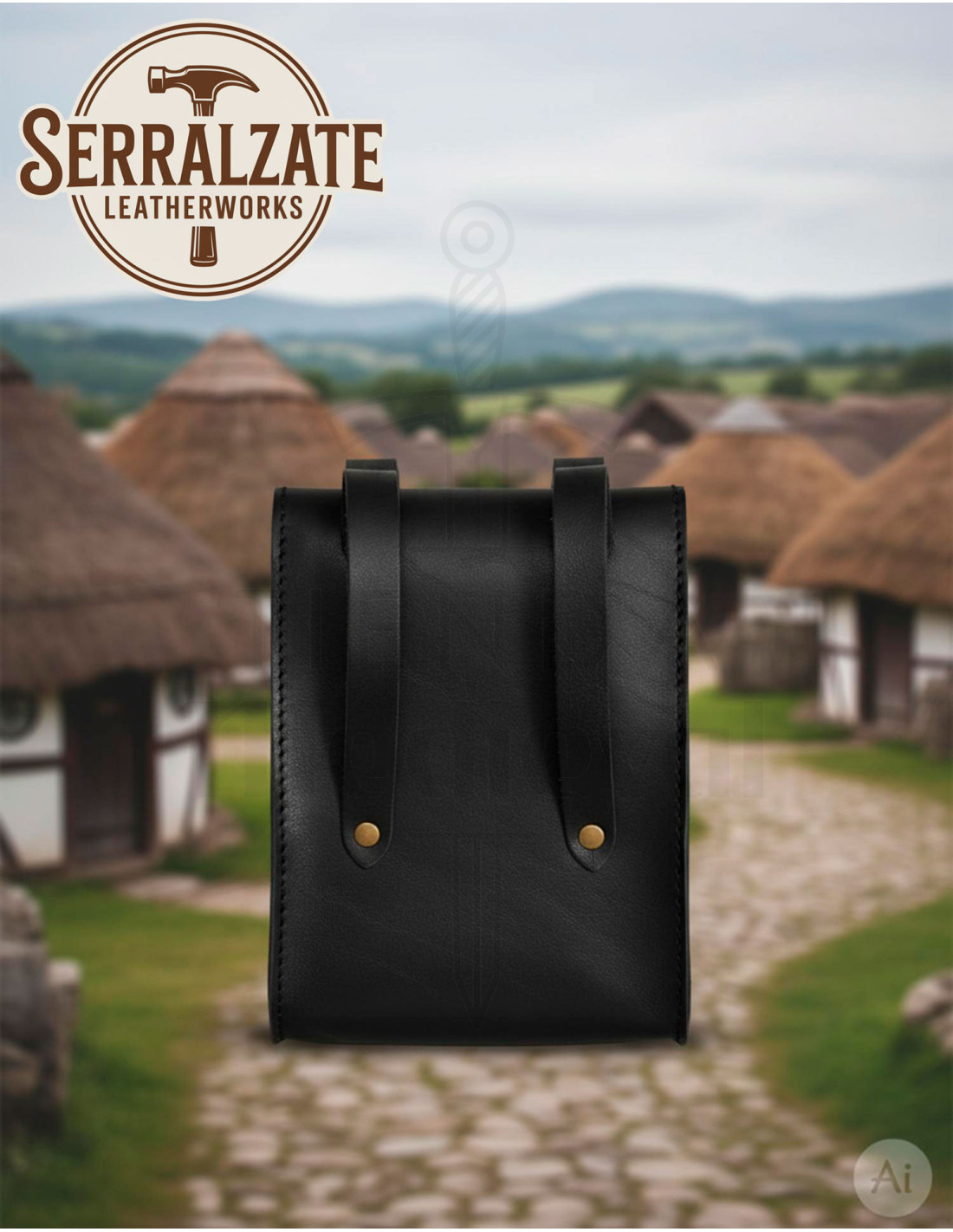 Gemaakt in Spanje van echt leer van premium kwaliteit, deze tas combineert bewerkt leer en messing beslag om mooi te verouderen, waarbij het een patina krijgt die het uiterlijk van een relikwie versterkt. Beschikbaar in zwart en bruin, het past zowel bij historische kleding als bij stedelijke outfits die een onderscheidende toets zoeken.