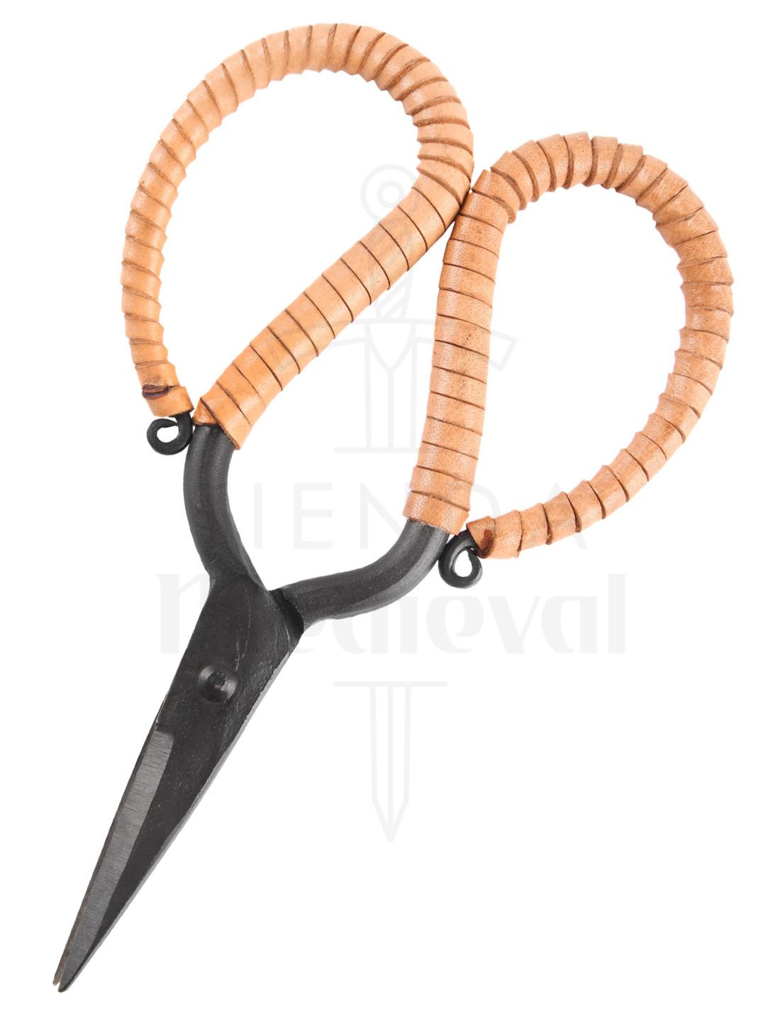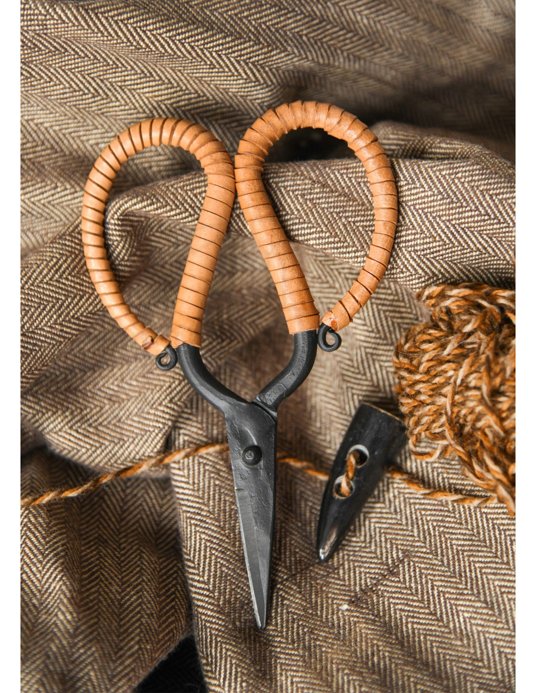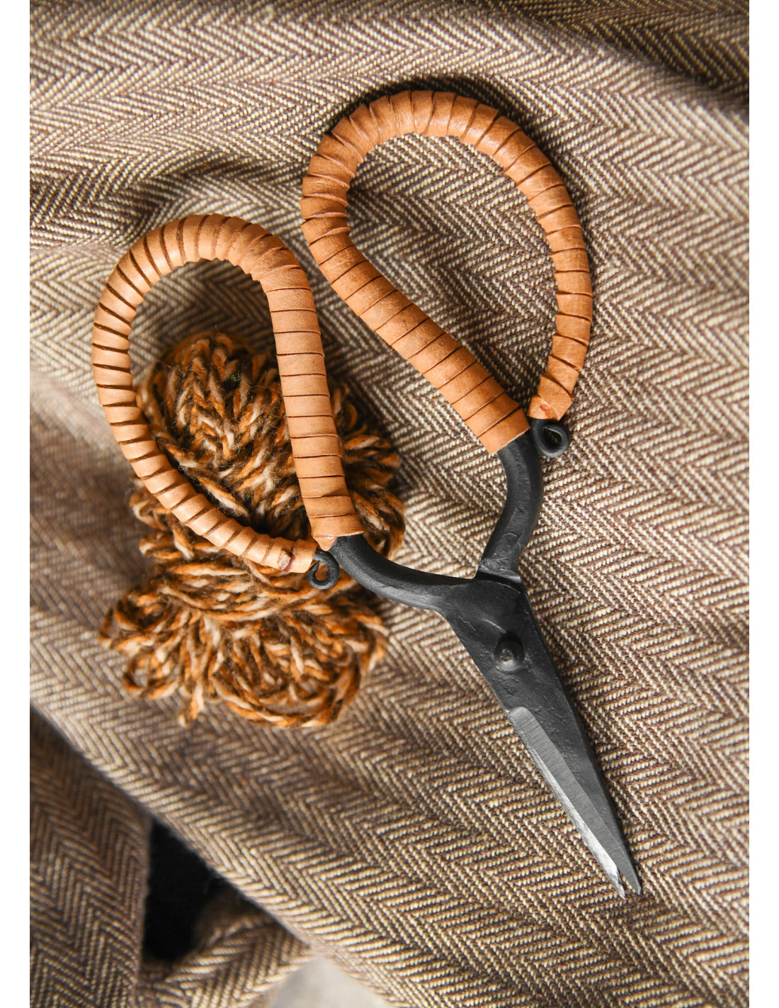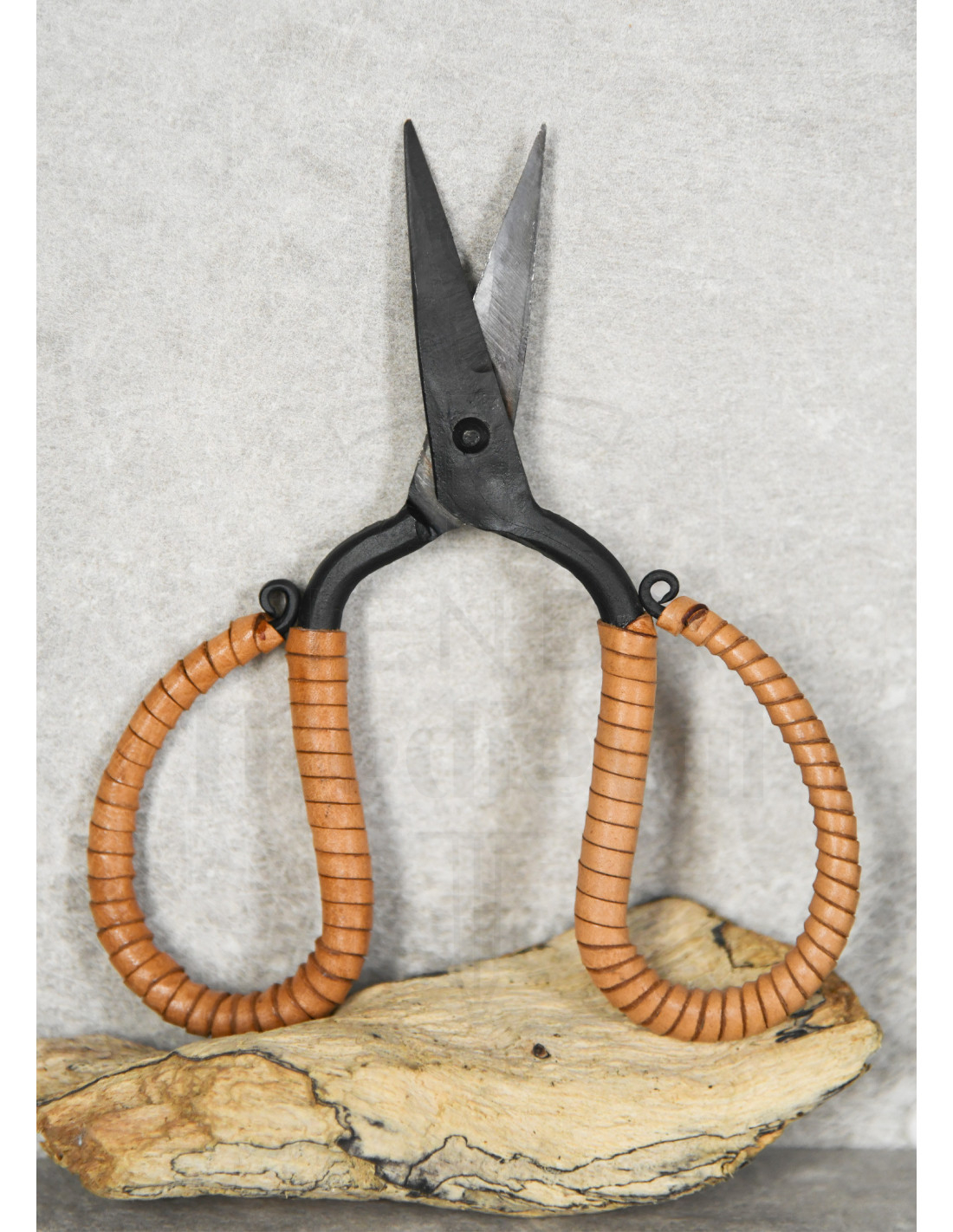 Handgesmede scharen met handvat gewikkeld in leer