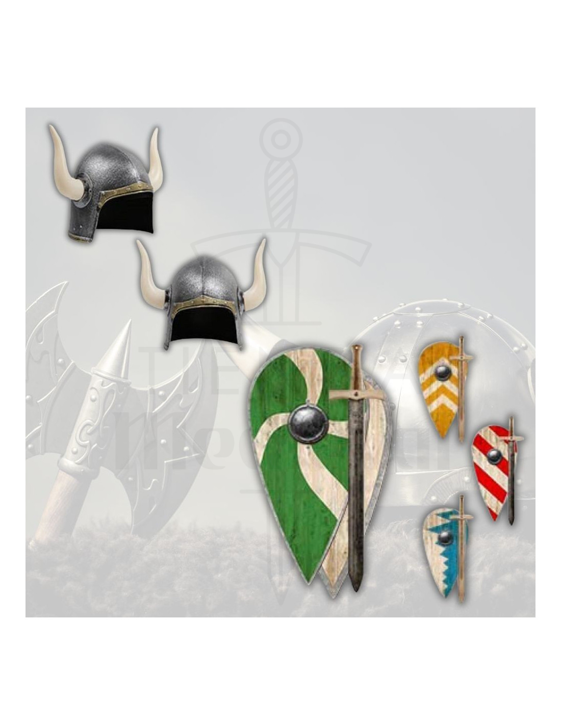 Weeg de moed en de avontuurlijke geest van je kleine met het Viking Kinderpakket! Deze complete set bevat een Vikinghelm met hoorns, een reliëf Normandisch schild en een rustiek zwaard, allemaal ontworpen om kinderen naar het tijdperk van de geduchte Viking- en Normandische krijgers te brengen. Perfect om thuis te spelen, te verkleden op feesten of spannende gevechten na te spelen, dit pakket is ideaal voor elk kind dat droomt van een dappere krijger te zijn.