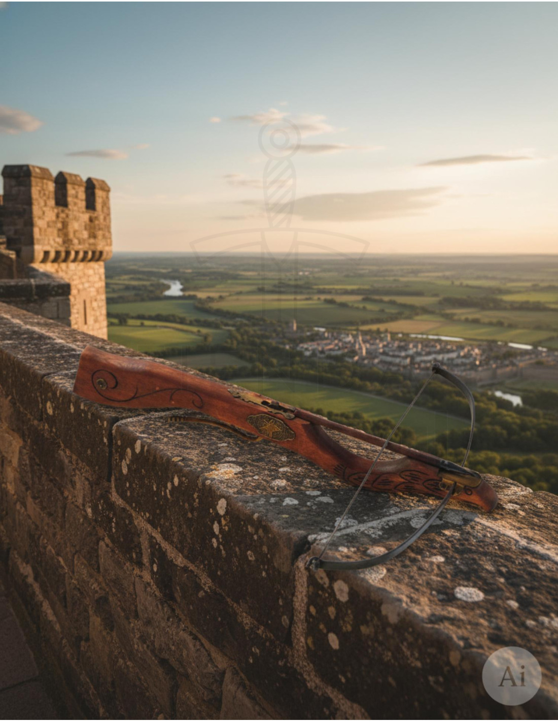 Deze kruisboog is gemaakt in Toledo, Spanje, bekend om zijn traditie in de productie van hoogwaardige wapens en bepantsering. Met het kwaliteitskeurmerk weet u zeker dat u een duurzaam en authentiek product koopt.
