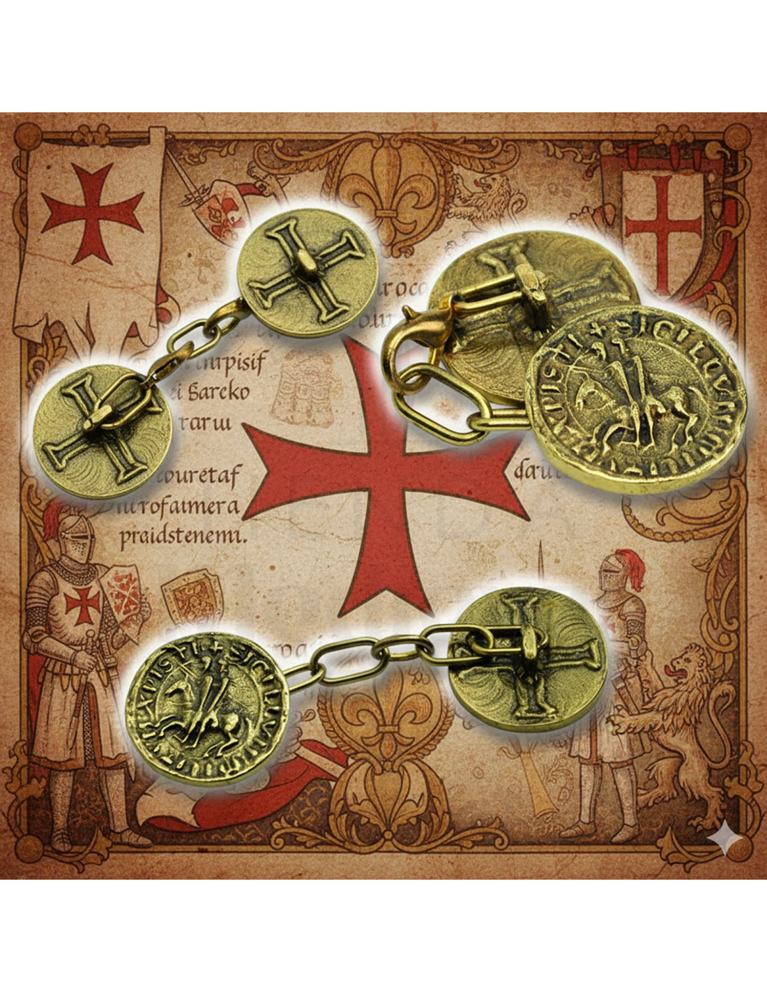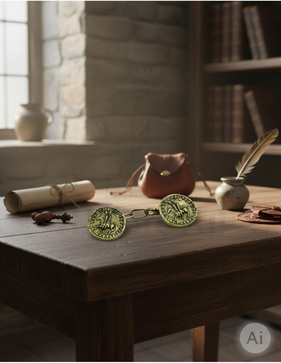 Ben je gepassioneerd door de geschiedenis en mysteries van de Tempeliers? Dan is deze Mantel Mantel met Tempelierszegel perfect voor jou. Deze cape-sluiting is gemaakt van verouderd messing en heeft een diameter van 4 cm, waardoor hij ideaal is voor elk type cape of kledingstuk dat je wilt versieren.