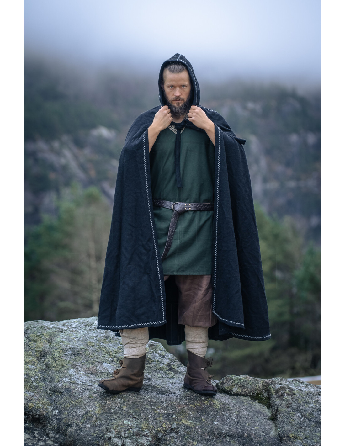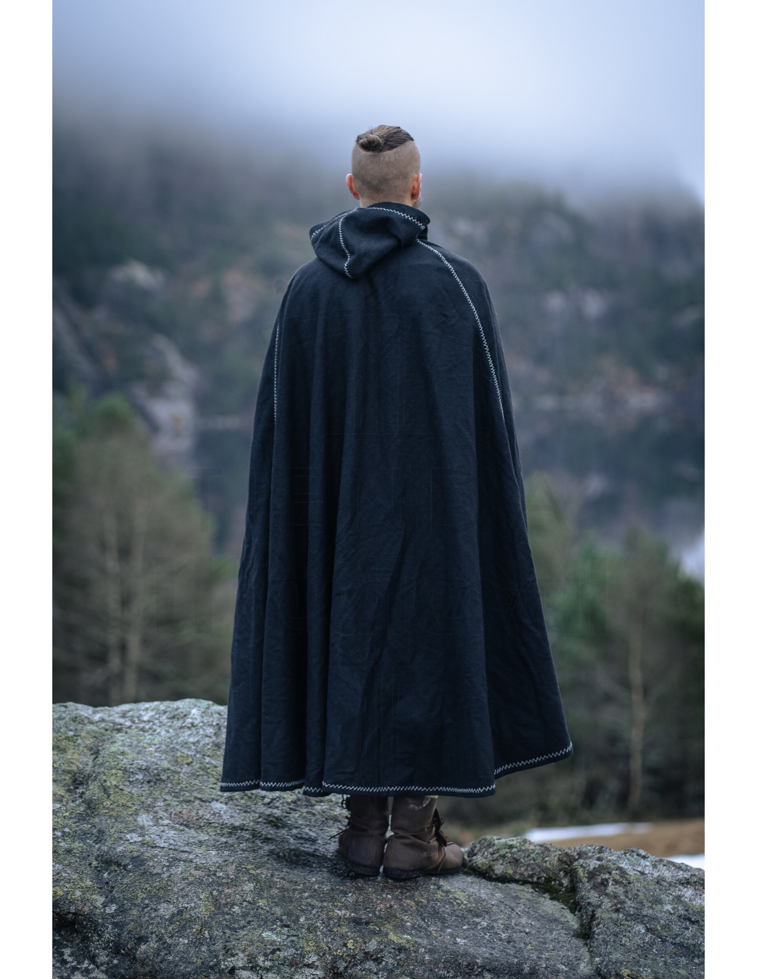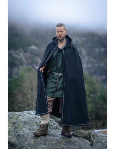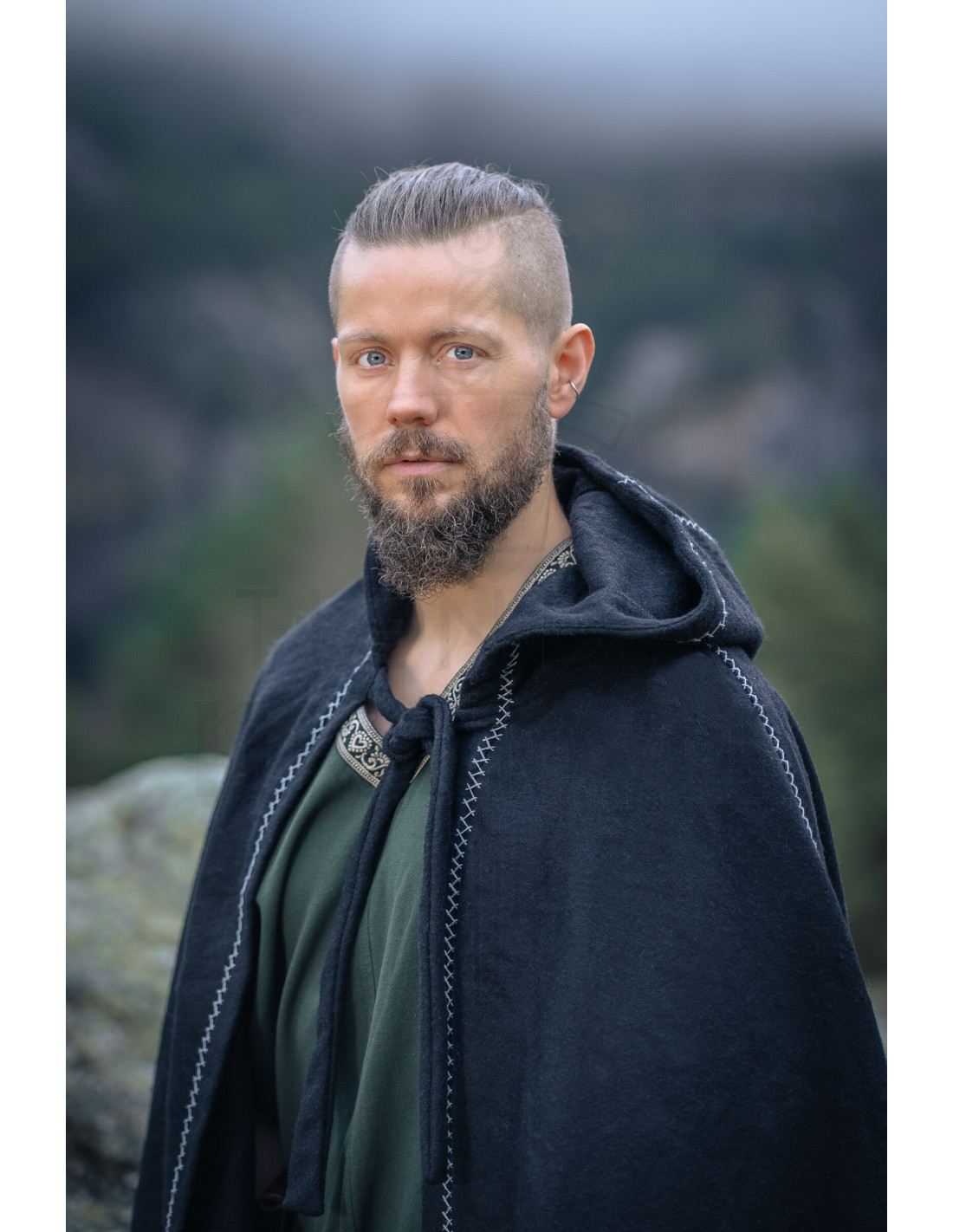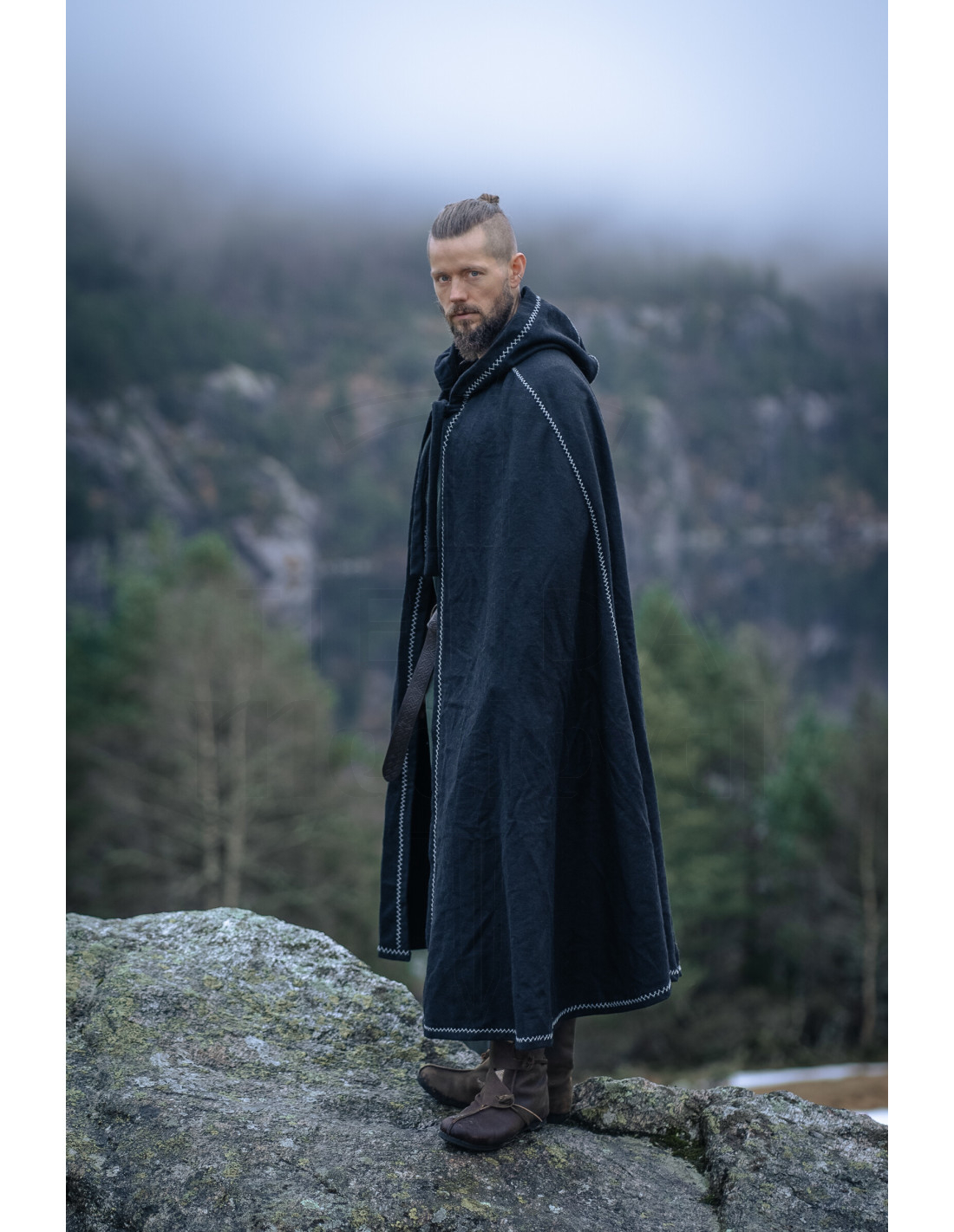 Ben je op zoek naar een accessoire dat historische authenticiteit combineert met moderne functionaliteit? Deze zwarte wollen cape is meer dan zomaar een kledingstuk, het is jouw perfecte bondgenoot om de kou stijlvol te trotseren met een Viking-uitstraling die niet onopgemerkt zal blijven.