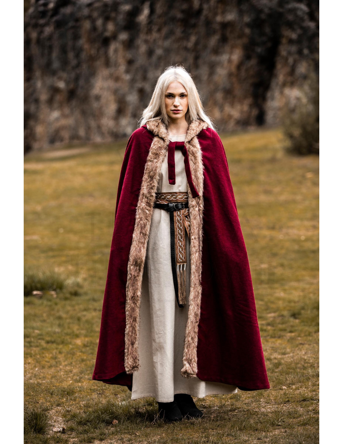 Als je de Vikingcape Model Fjell met Synthetische Bont, Rood wilt kopen, is deze ontworpen voor degenen die waarde hechten aan aanwezigheid en functionaliteit. Het ontwerp biedt een genereuze dekking die omhulsel biedt zonder te beperken, ideaal om comfortabel te blijven op koude dagen of licht regen, zonder in te boeten op een onberispelijk uiterlijk tijdens beurzen, thematische evenementen of informele uitjes.
