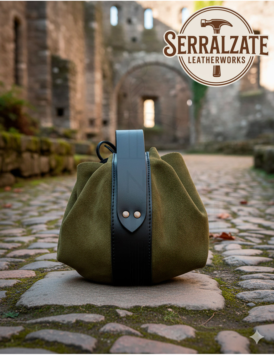 Het ontwerp is perfect voor wie de veelzijdigheid van een leren tas wil ervaren zonder in te boeten aan functionaliteit. Met een ruime diameter wanneer volledig geopend, biedt deze tas voldoende ruimte om alle benodigde items mee te nemen tijdens je avonturen op middeleeuwse markten of LARP-evenementen. Bovendien geeft de groene kleur een frisse en levendige uitstraling, die diverse outfits en personages aanvult en elke gebruiker in staat stelt zijn persoonlijke stijl op een unieke manier uit te drukken.