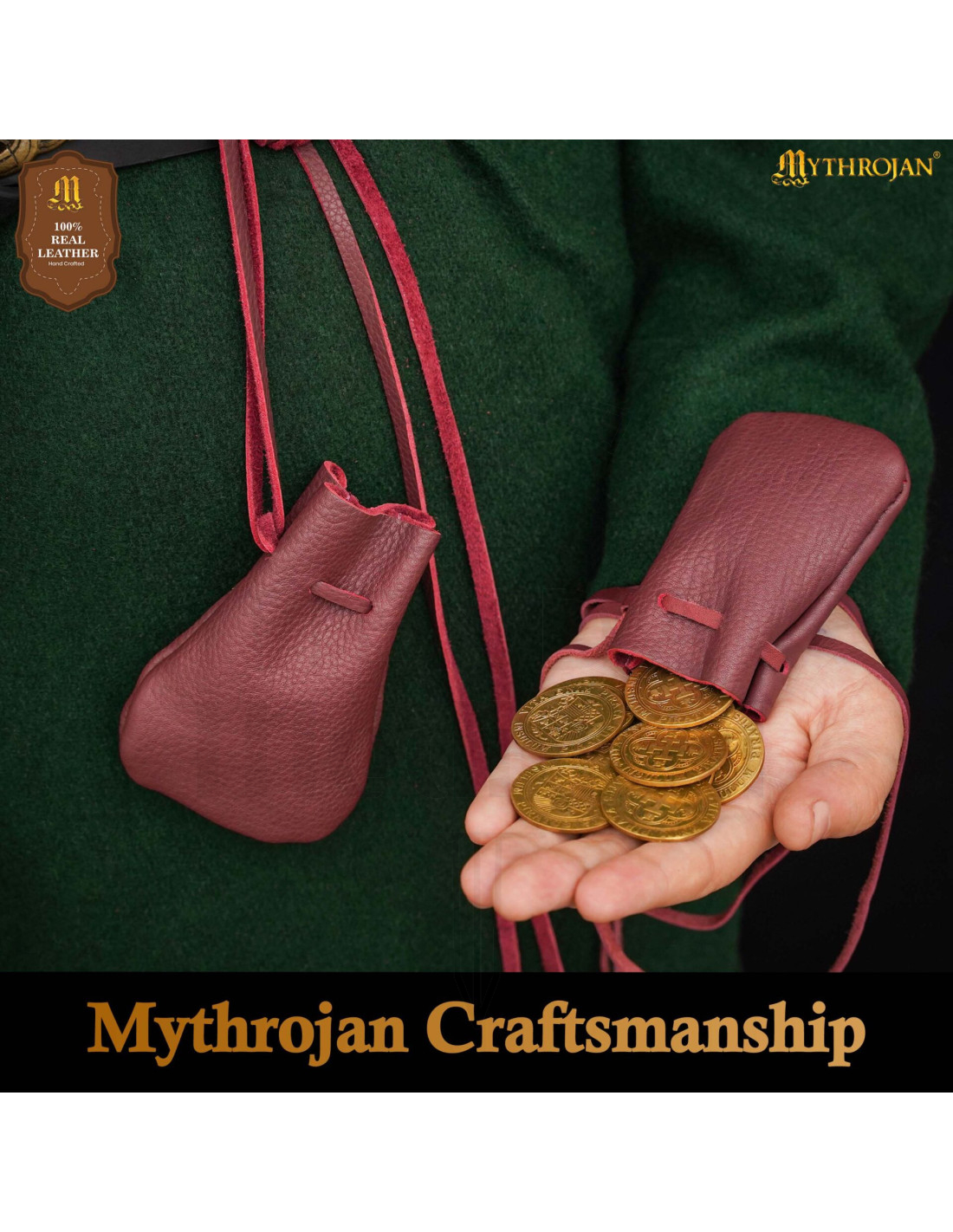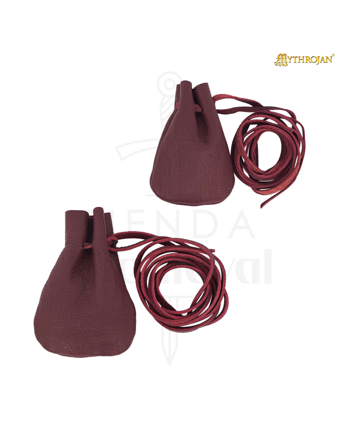 Ben je op zoek naar een authentiek en praktisch accent voor je middeleeuwse of fantasieoutfit? Dit pakket van 2 suède buidels in elegant bordeauxrood leer zorgt ervoor dat je er stijlvol en functioneel uitziet bij elk evenement.