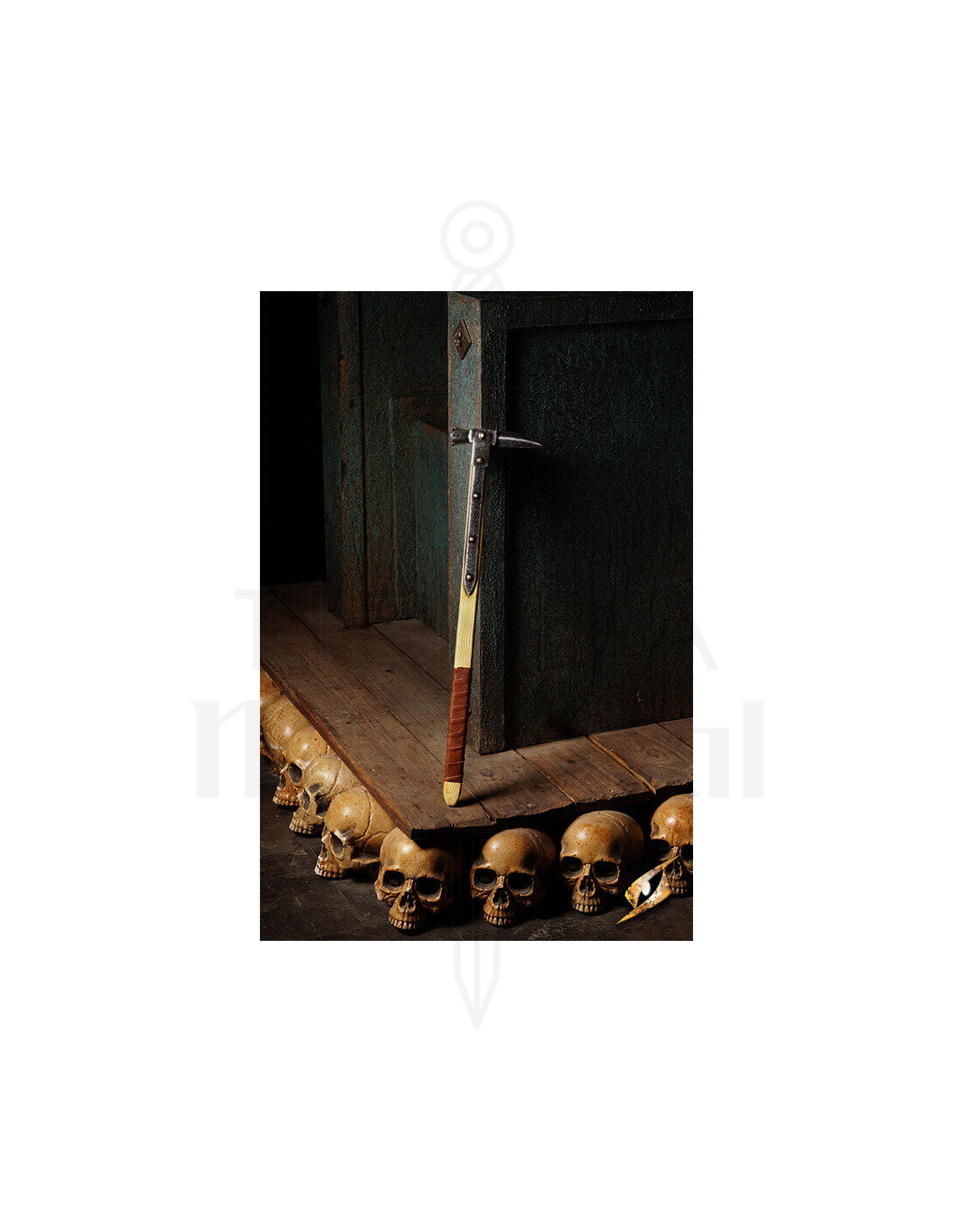 Gemaakt door Epic Armoury, onderscheidt dit stuk zich door kwaliteit en duurzaamheid. De structuur van EVA-foam zorgt voor een stevige en veilige gebruikservaring, perfect voor dynamische gevechten zonder risico op verwondingen. De latexlaag geeft een realistische uitstraling, die een oud en goed afgerond stuk nabootst, klaar om elke uitdaging aan te gaan. Het handvat, geïnspireerd op hout met zichtbare spijkers, biedt een stevige en comfortabele grip, waardoor je snel en effectief kunt manoeuvreren in gevecht of op het podium.
