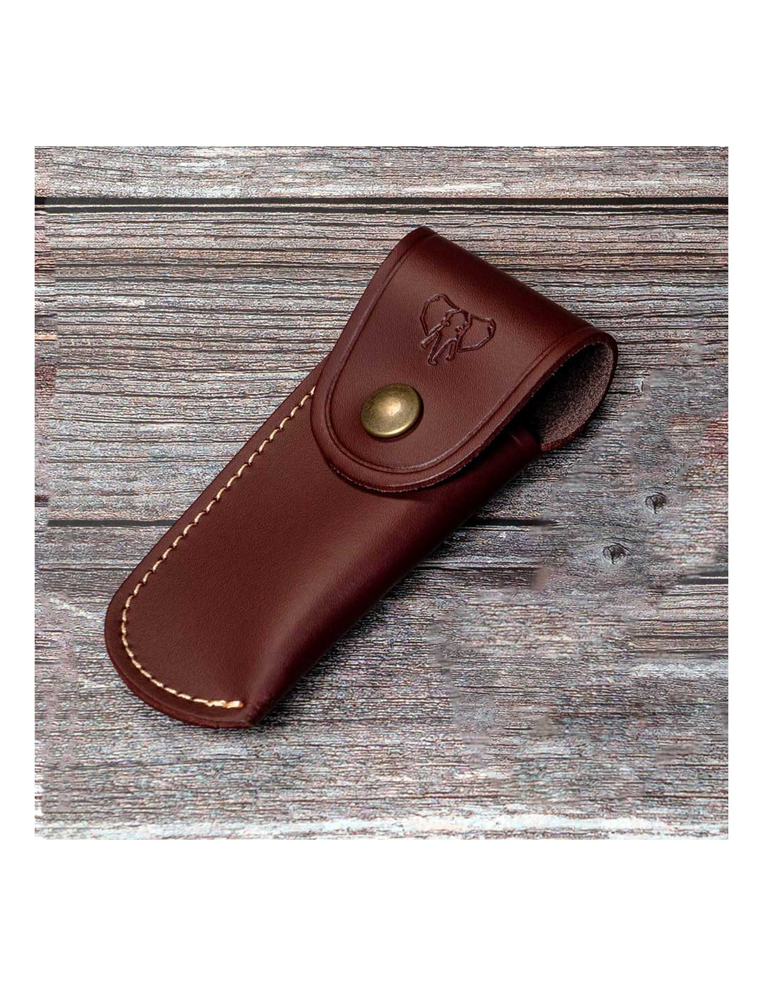 - Elegant bruin leer: deze hoes is gemaakt van premium bruin leer. Dit materiaal is niet alleen duurzaam, maar voegt ook een vleugje klasse toe aan uw uitrusting. Stel je de elegantie voor die het aan je scheermes zal geven.