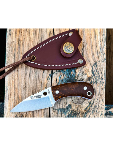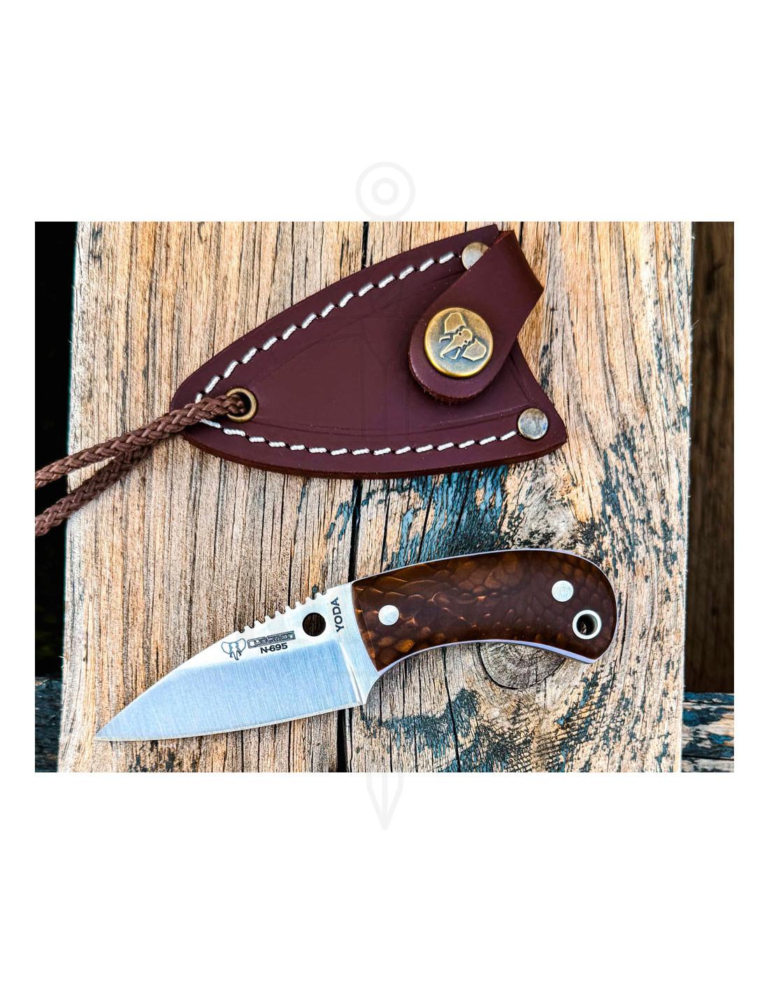 Ontdek het Yoda Juma-mes met bruin handvat van Cudeman, een waar pareltje voor liefhebbers van avontuur en kwaliteit. Dit mes is een perfecte combinatie van robuuste functionaliteit en een elegant ontwerp, ideaal voor elke taak in het veld of als opvallend stuk in uw collectie.