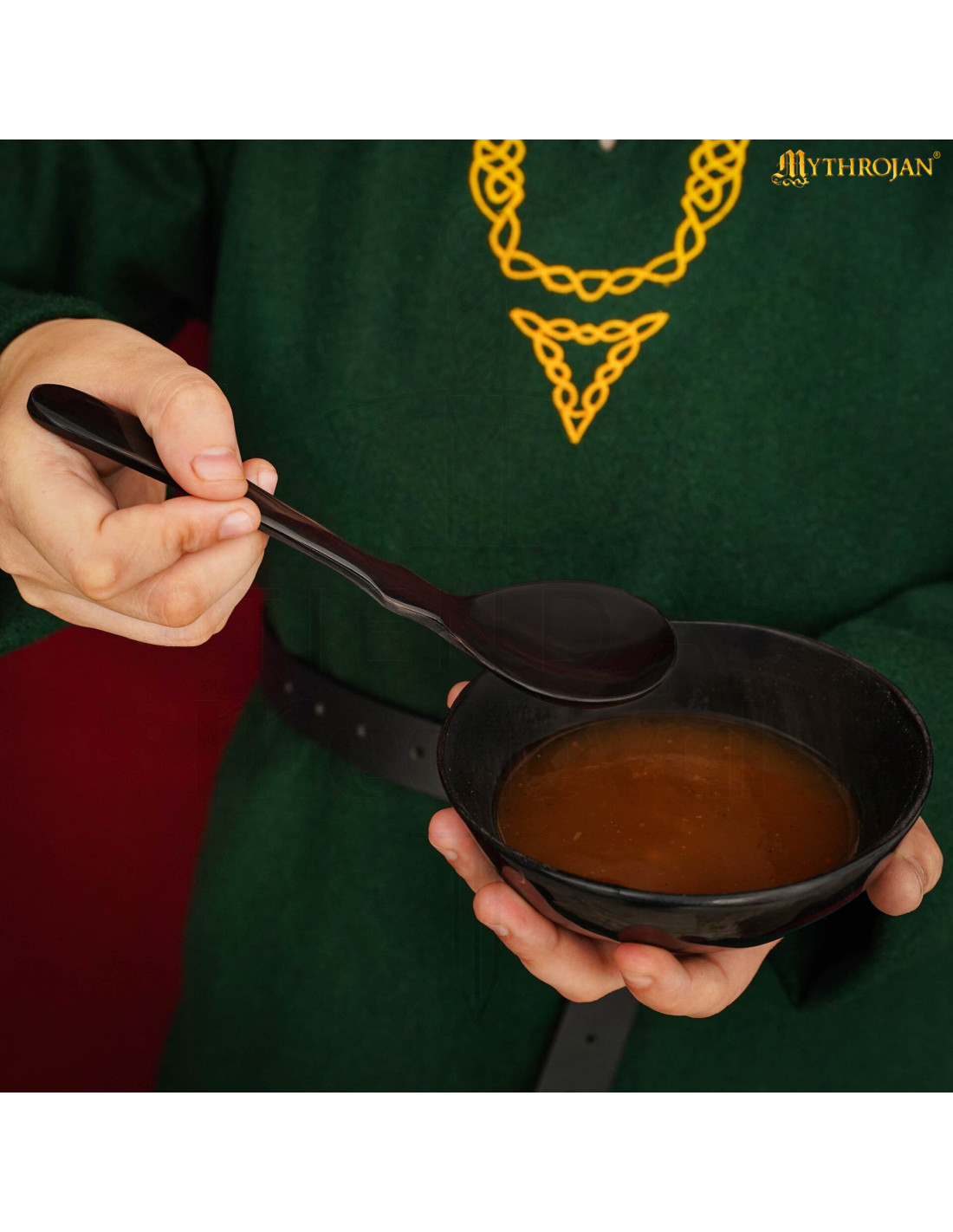 Gemaakt door ervaren ambachtslieden, weerspiegelt elke lepel natuurlijke variaties in kleur en textuur, waardoor ze perfect zijn als functionele stukken en decoratieve elementen voor historische recreaties. Hoorns en hoornkeukengerei waren gebruikelijk in de Vikingtijd en de Middeleeuwen, vanwege hun lichtheid en weerstand, eigenschappen die deze lepels behouden.
