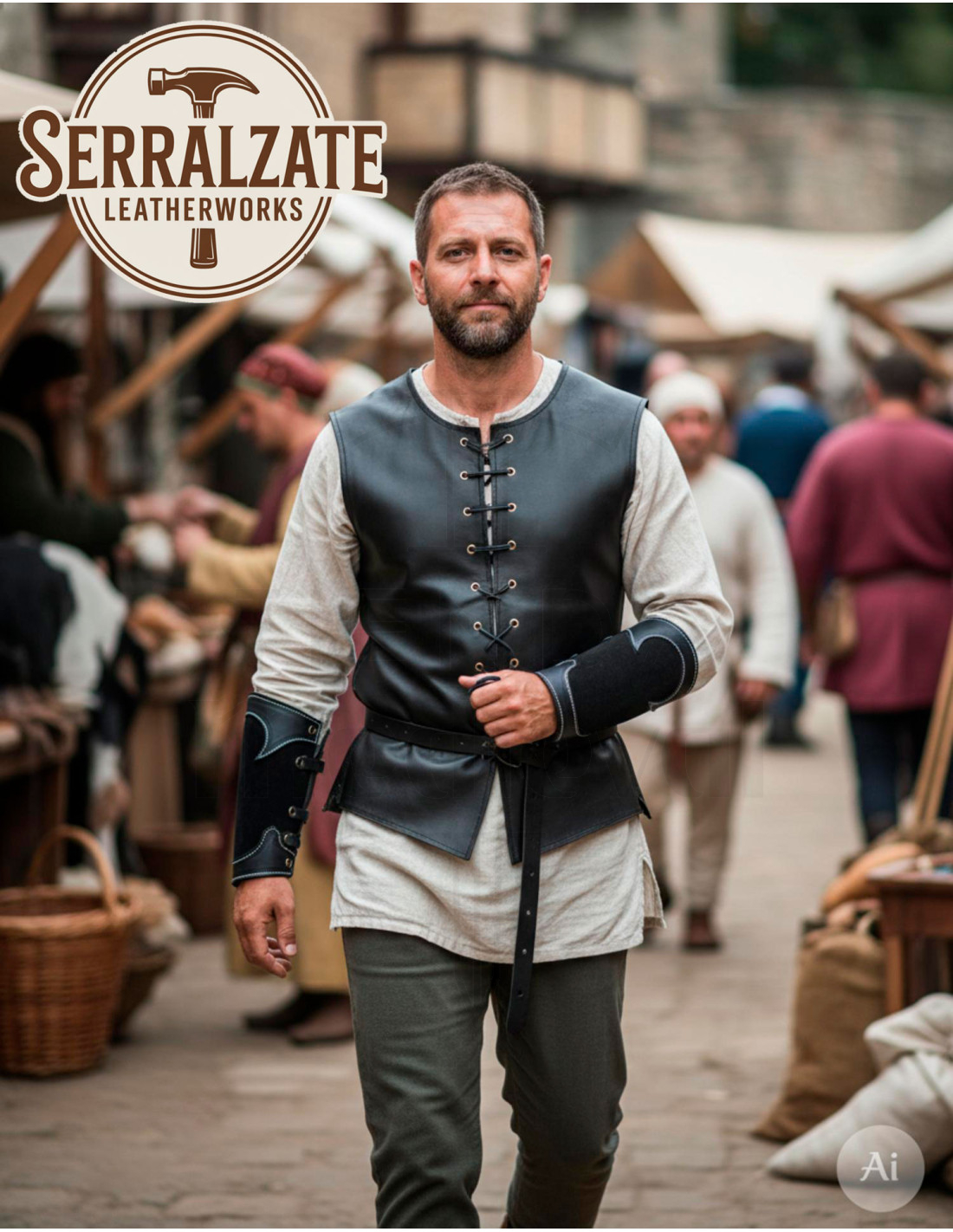 Als je Middeleeuwse jager polsbanden van leer, zwart wilt kopen en een stuk met geschiedenis, praktische uitstraling en aanwezigheid wilt dragen, is dit een optie die esthetiek, weerstand en betekenis in elk detail combineert.