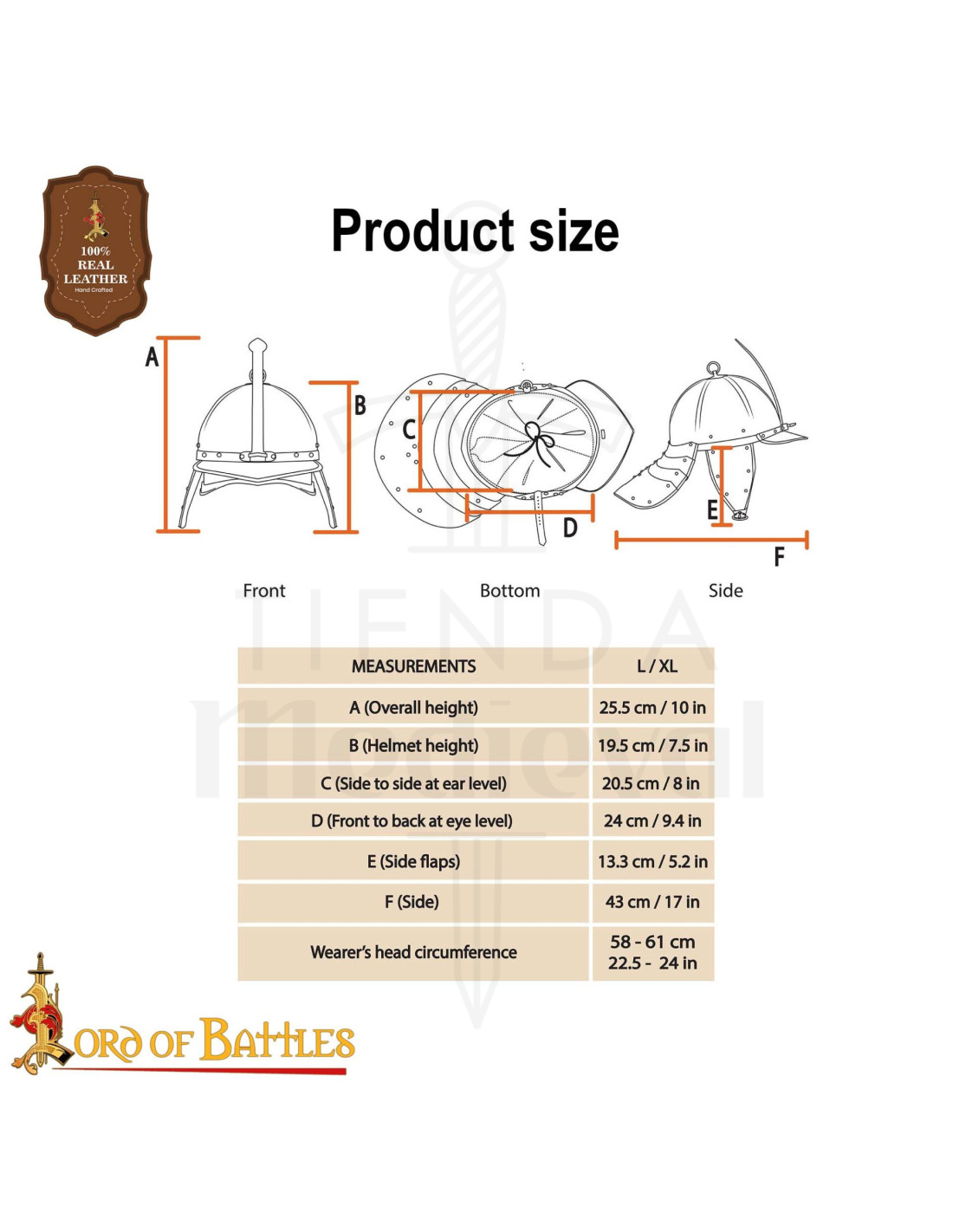 Met een gewicht van ongeveer 2,5 kg is het een perfecte balans tussen bescherming en gebruiksgemak. Deze helm zorgt er niet alleen voor dat je eruitziet als een middeleeuwse krijger, maar wordt ook een opvallend element in je geschiedeniscollectie of je fantasie-avontuur.