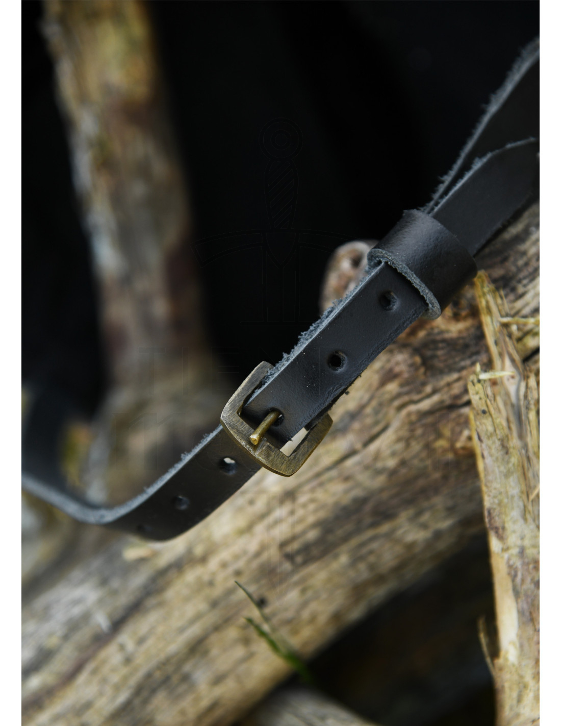 Een van de opvallende kenmerken van deze helm is de neusbescherming van 4 mm, die je extra verdediging biedt tijdens je gevechten. Bovendien zorgt de leren sluiting met koperen gesp ervoor dat je hem stevig op je kin kunt houden, zodat hij niet los kan komen tijdens actie.