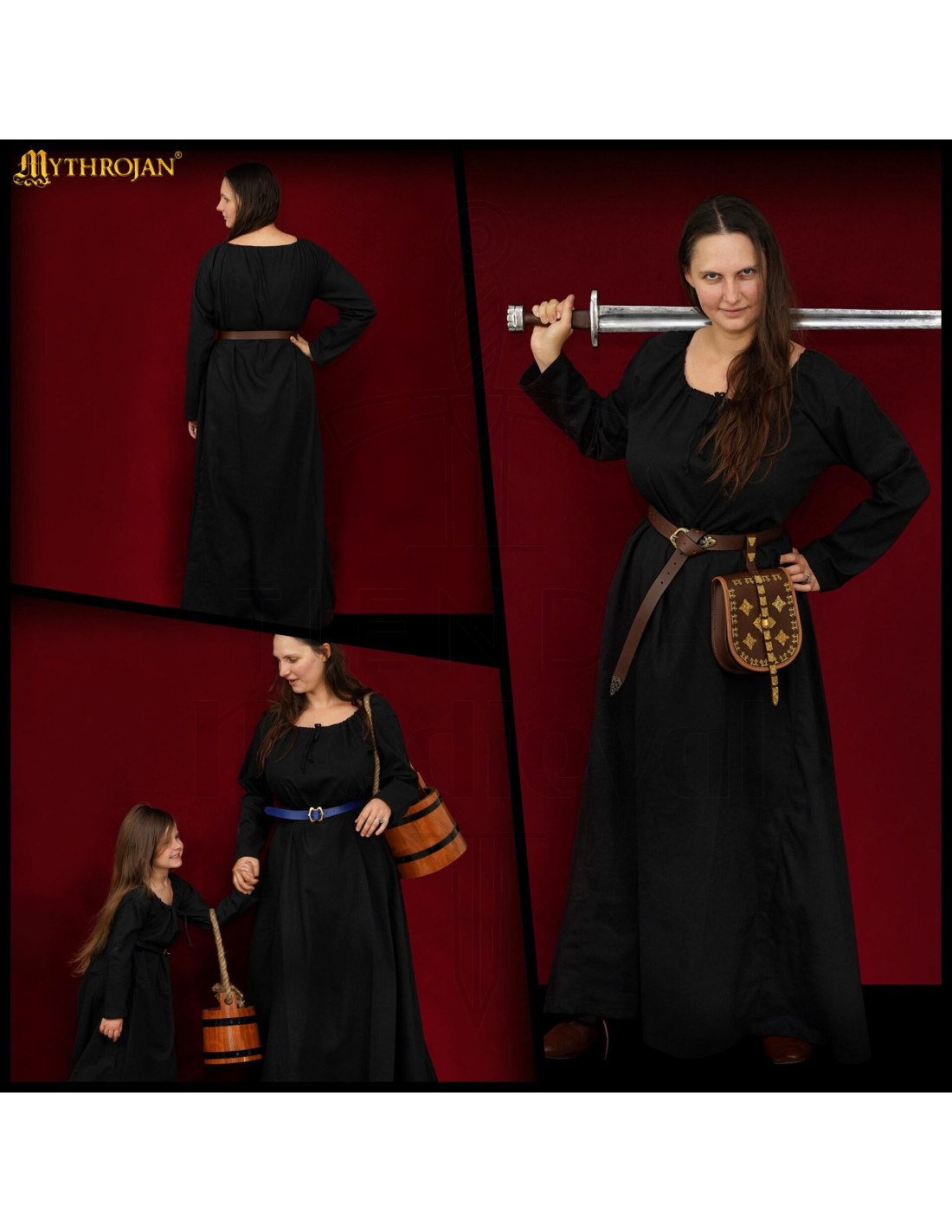 Dit stuk verbindt met de middeleeuwse traditie, herinnerend aan de kirtles of cottes die tussen de 12e en 15e eeuw werden gedragen, kledingstukken die bedoeld zijn om te blijven, aan te passen en diverse dagelijkse activiteiten te ondersteunen. Als je op zoek bent naar het kopen van een Lange middeleeuwse jurk van katoen, model Maiden, zwart, dan krijg je een veelzijdig, stevig kledingstuk met een sobere afwerking dat even goed werkt in re-enactments, LARP, renaissancebeurzen of als een historische knipoog in je dagelijkse garderobe.