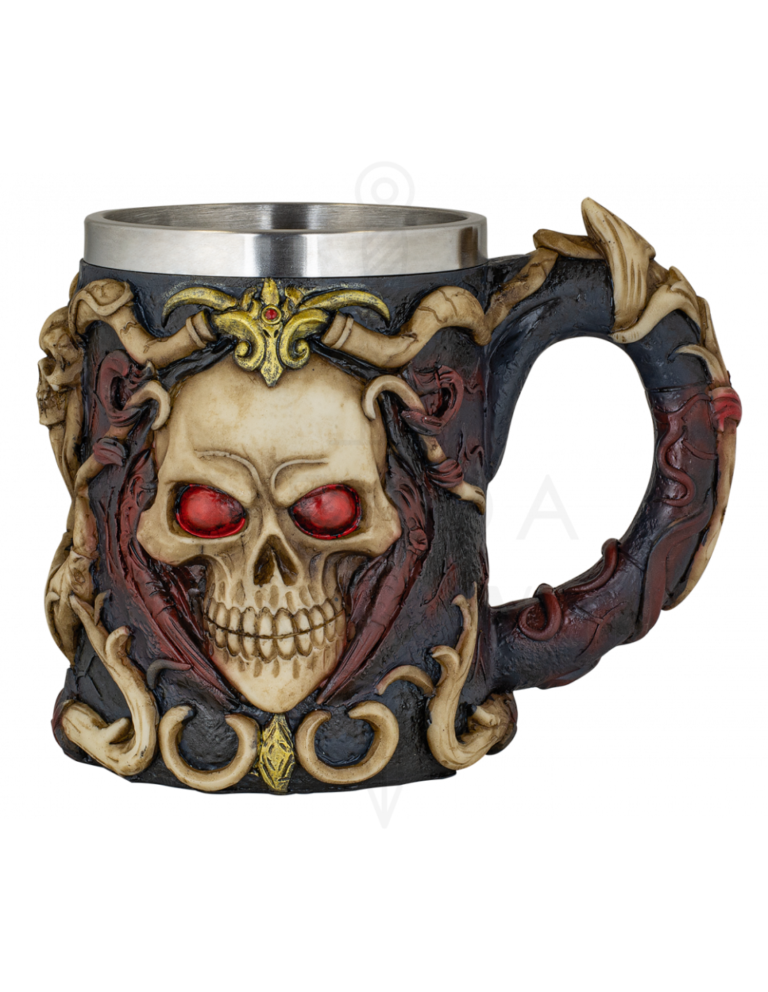 Met zijn gedetailleerde ontwerp met een gotische schedel nodigt deze mok ons uit om na te denken over de betekenis van de levenscyclus. Het vertegenwoordigt het begin en het einde en herinnert ons aan het belang van het benutten van elk moment en het waarderen van de kwetsbaarheid van het bestaan.