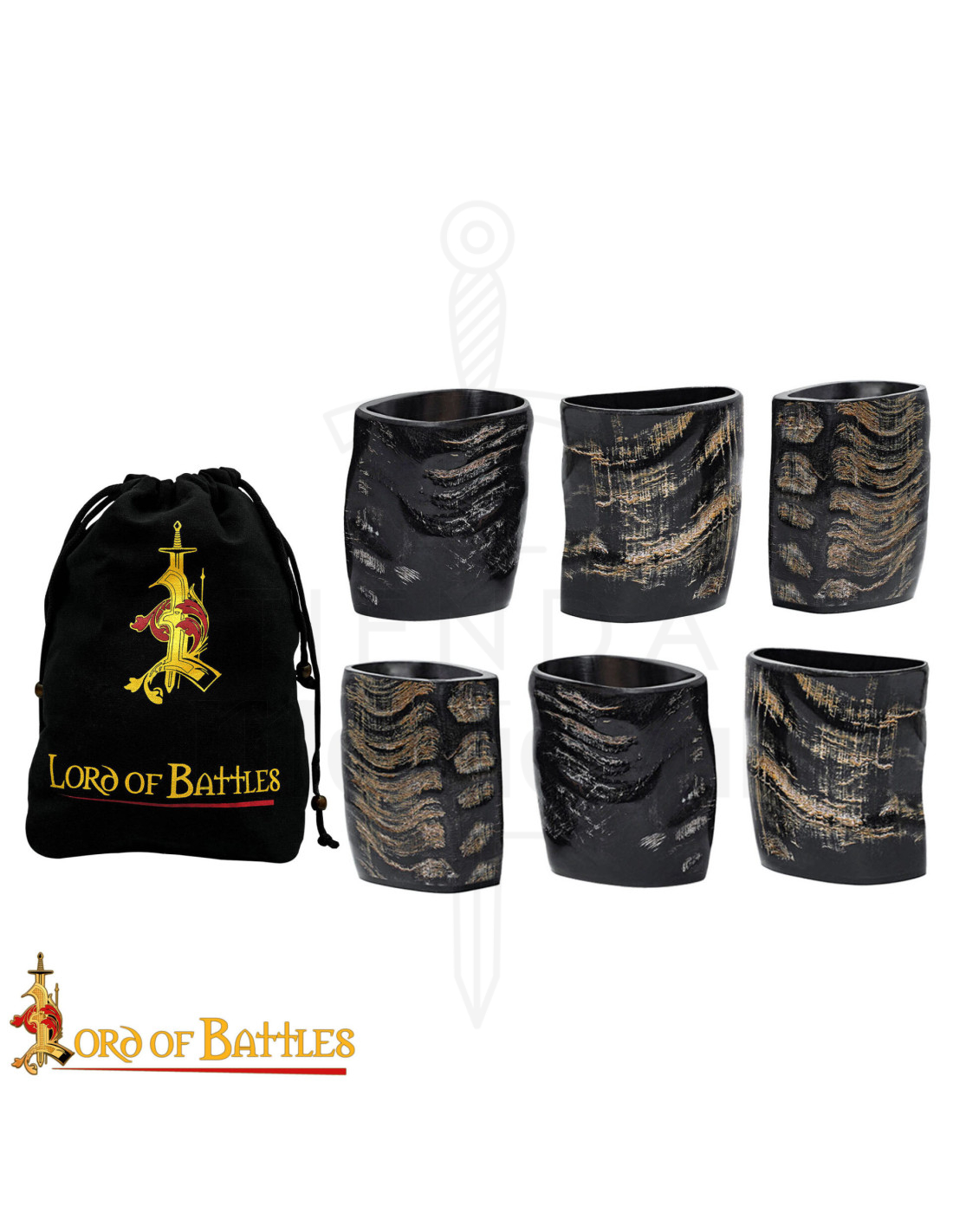 Breng de smaken en elegantie van het Vikingtijdperk tot leven met deze exclusieve set middeleeuwse glazen van gepolijst buffelhorn. Elk glas, met een capaciteit van ongeveer 68 ml, is zorgvuldig met de hand gesneden en gepolijst, waardoor een robuuste en natuurlijke afwerking ontstaat die de essentie van de oude Noordse krijgers weerspiegelt. Perfect voor het genieten van koude dranken zoals mede, bier, whisky, rum of schnaps, nodigen deze glazen je uit om de vieringen in Viking-banketzalen opnieuw te beleven, waar elke toost een daad van eer en kameraadschap was.