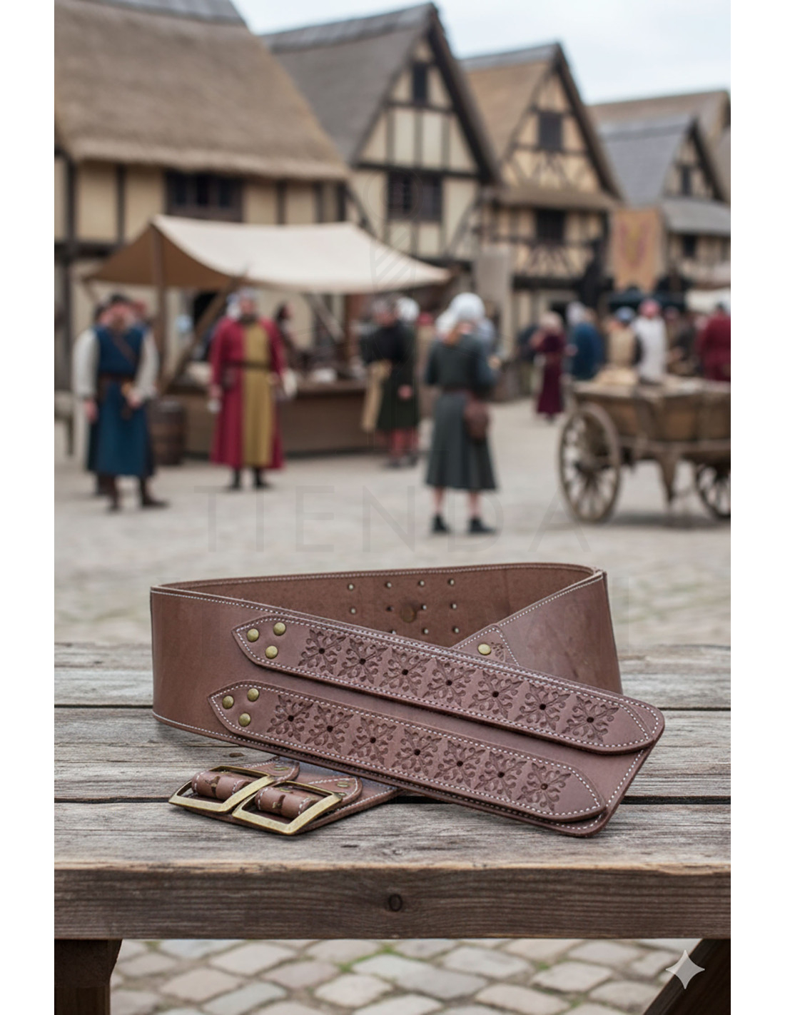 Deze prachtige riem wordt in Spanje vervaardigd door een Spaans merk dat gespecialiseerd is in kostuums en accessoires voor LARP. Als je een liefhebber bent van live rollenspellen en historische recreaties, is deze riem de perfecte keuze om je outfit compleet te maken en je volledig onder te dompelen in je favoriete personage.
