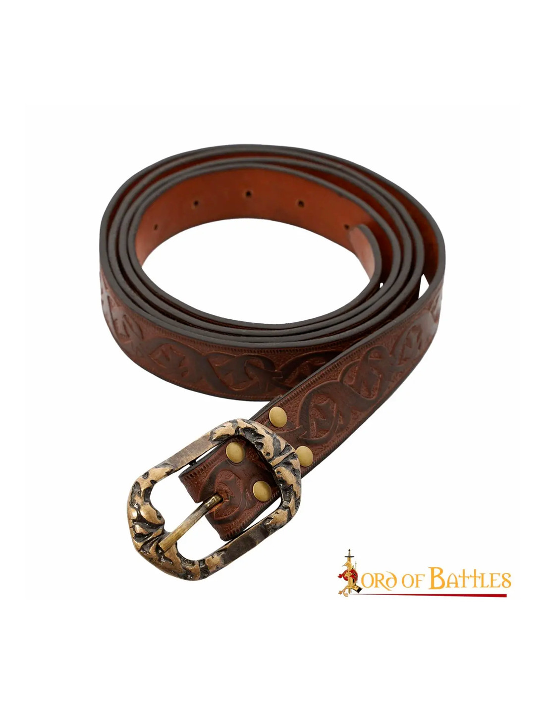 Kortom, de renaissanceriem van bruin leer met reliëf is een essentieel accessoire voor liefhebbers van het renaissancetijdperk. Het is niet alleen functioneel en duurzaam, maar voegt ook een vleugje stijl en authenticiteit toe aan je outfit. Mis de kans niet om deze prachtige riem te dragen tijdens uw volgende evenementen!
