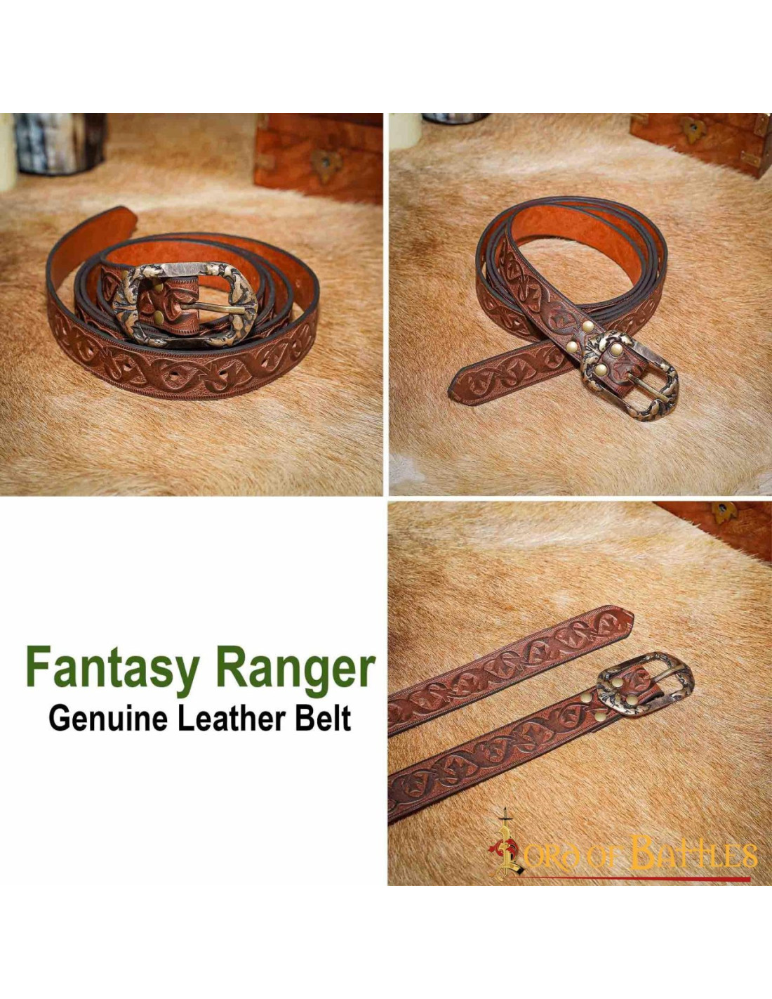 Met onze middeleeuwse roodbruine leren riem met bloemenmotief breng je jouw Ranger-karakter op authentieke en elegante wijze tot leven. Deze riem is het perfecte accessoire voor je avonturen op middeleeuwse kermissen, LARP-evenementen of cosplay. Bestel hem nu en bereid je voor om op te vallen tijdens je volgende odyssees!