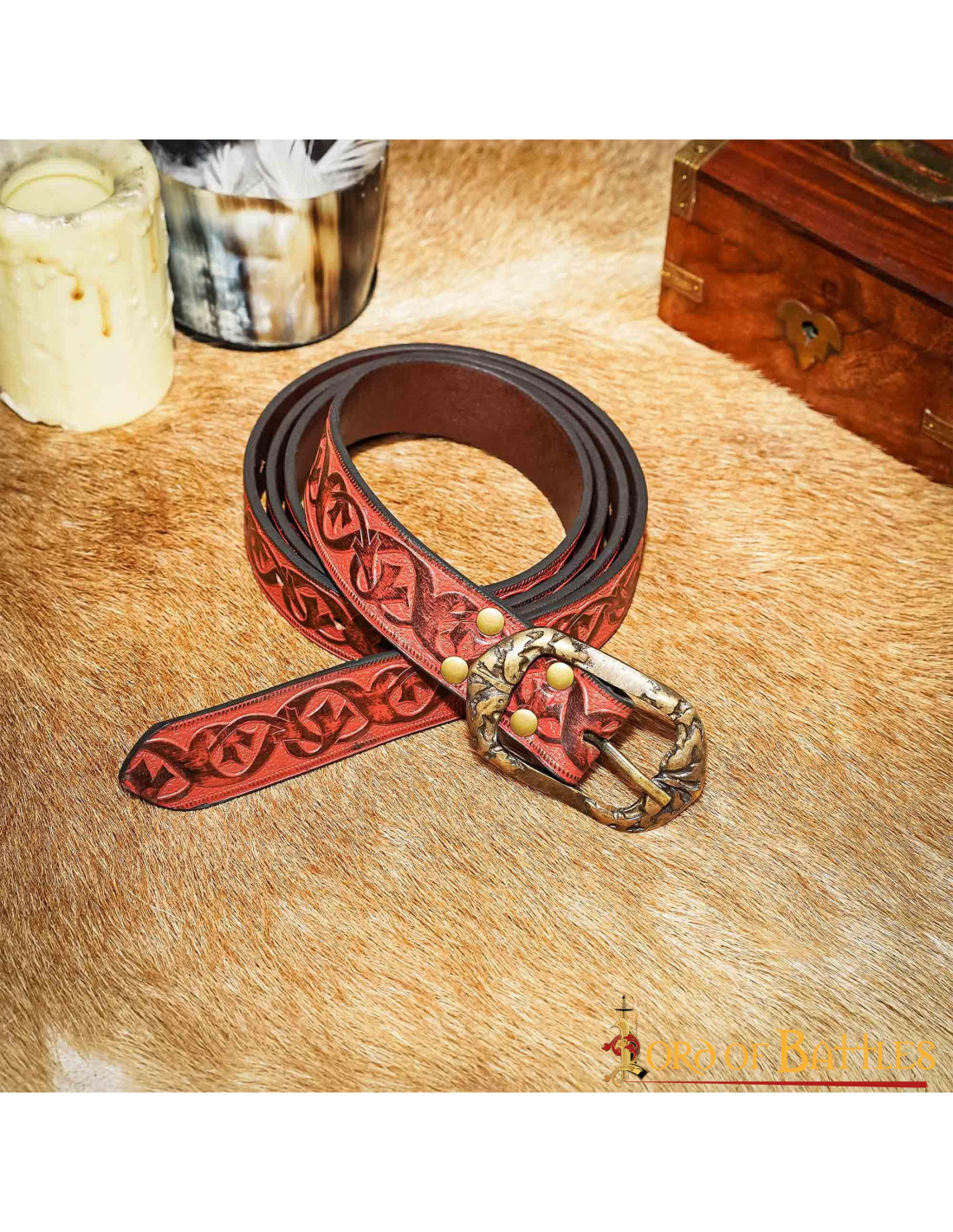 Heb je altijd al een ranger willen zijn op je volgende middeleeuwse kermis, LARP-evenement of cosplay?Onze middeleeuwse roodbruine leren riem met bloemmotief is de perfecte keuze om je ranger-outfit compleet te maken tijdens je volgende odyssees en evenementen! Aanbevolen functies: