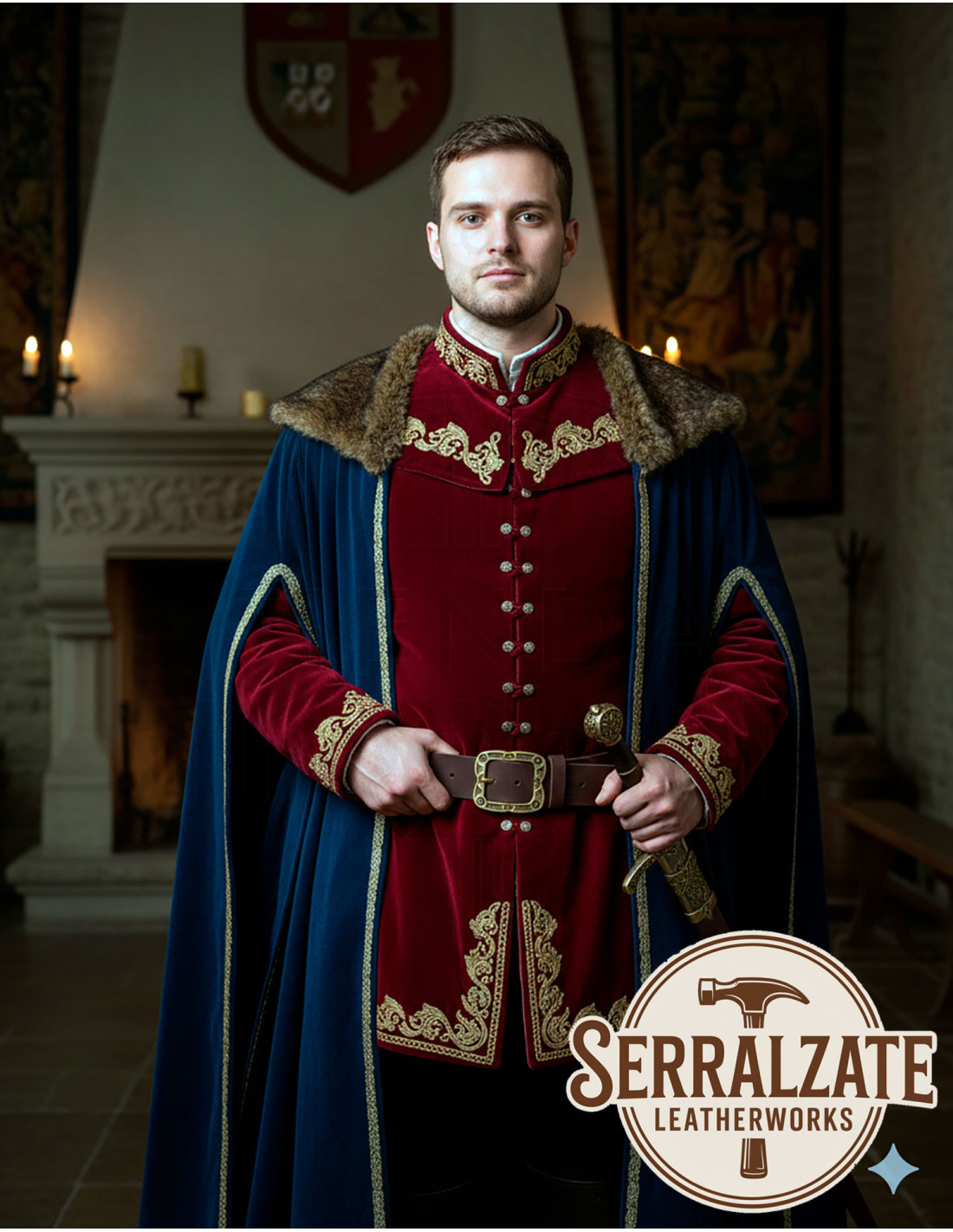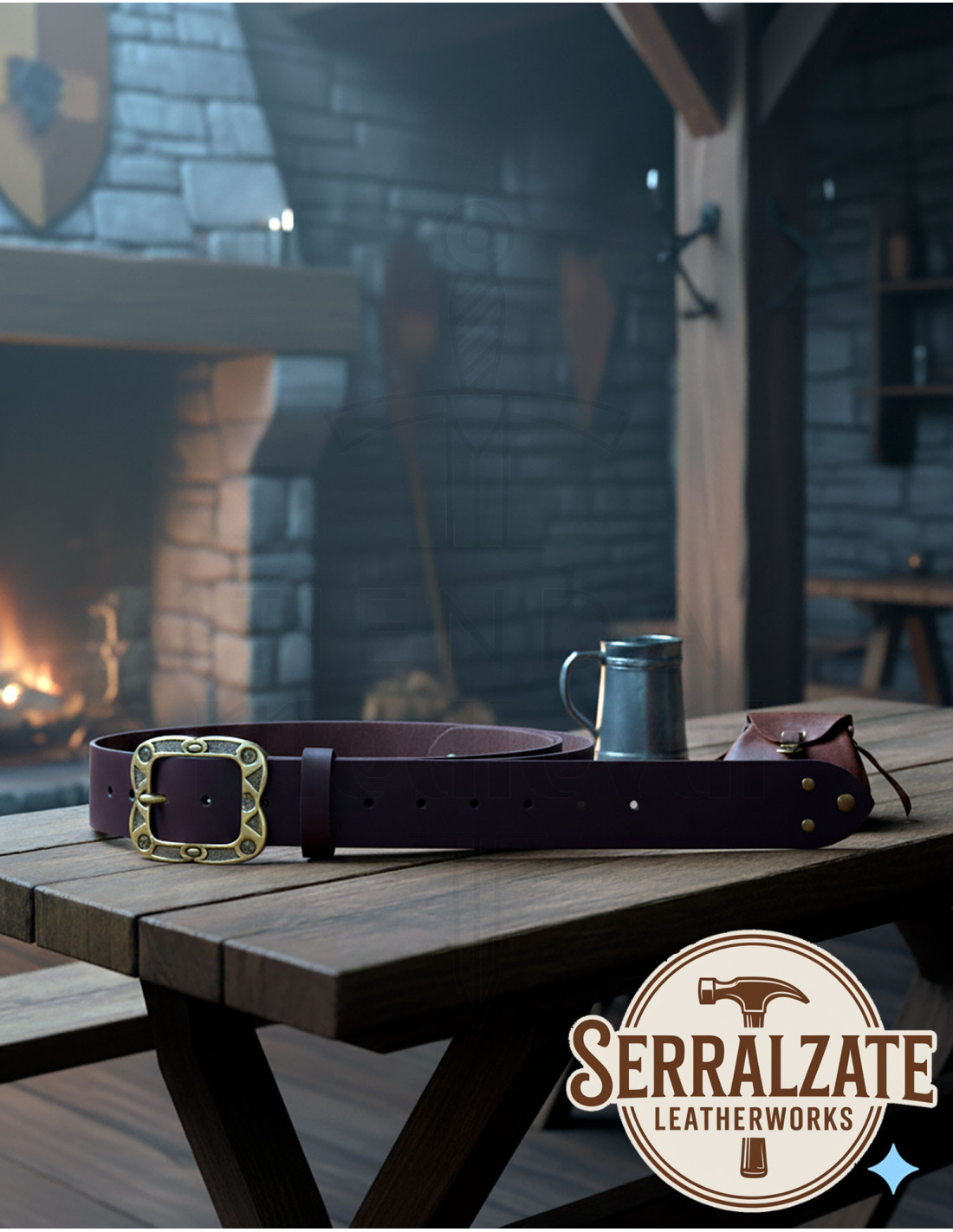 De middeleeuwse leren riem Mateo in bruin leer is een uniek stuk dat duurzaamheid en elegantie combineert in een robuust en verfijnd ontwerp. Deze riem is onderverdeeld en voorzien van stevige klinknagels die zorgen voor grote stabiliteit, perfect voor een comfortabele en veilige pasvorm zonder stijl te verliezen. De versierde metalen gesp in Zamak voegt een verfijnd accent toe, waardoor de algehele afwerking van de riem wordt verhoogd.