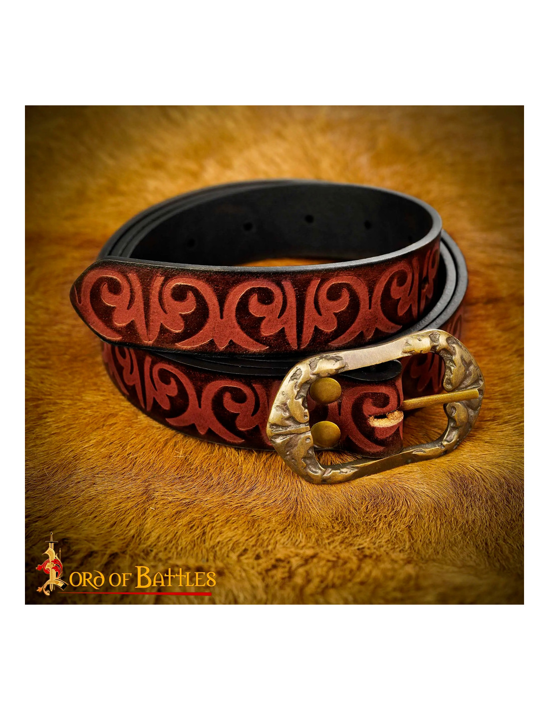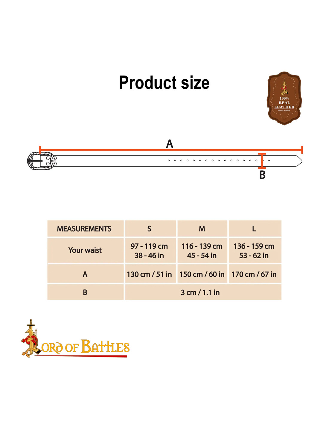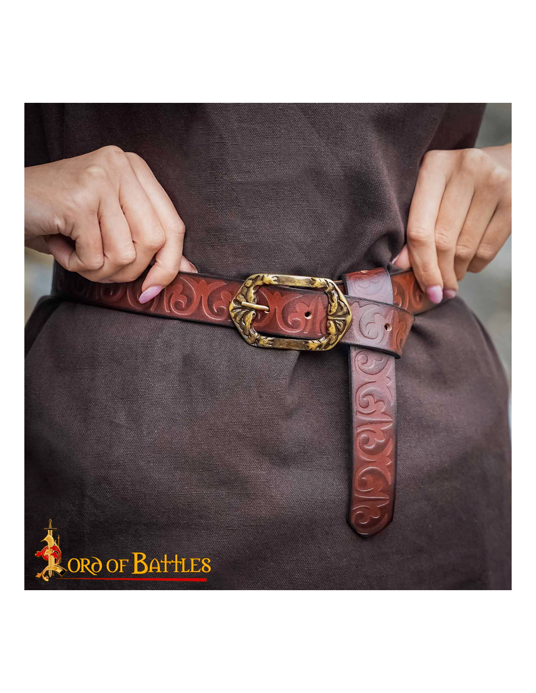 Stel je een accessoire voor dat niet alleen je dagelijkse stijl versterkt, maar je ook verbindt met de essentie van vervlogen tijden en fantasiewerelden. Deze natuurlijke leren riem, zorgvuldig met de hand vervaardigd en voorzien van een reliëfontwerp geïnspireerd op de middeleeuwen, is precies wat je garderobe nodig heeft om het verschil te maken.