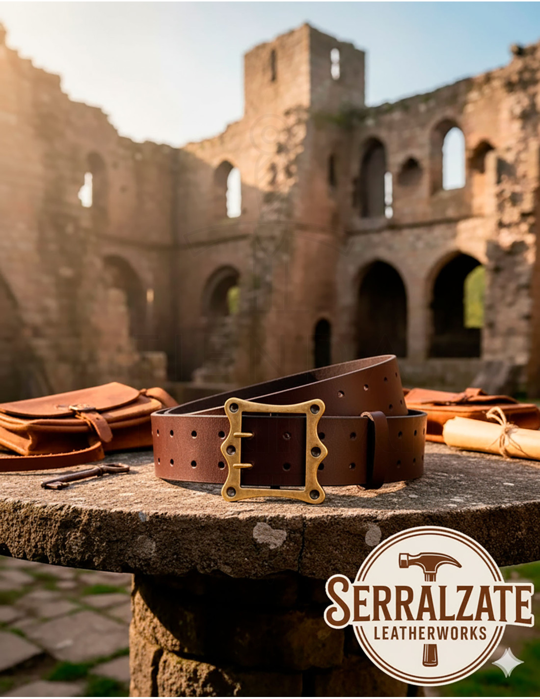 Serralzate LeatherWorks, bekend om de kwaliteit van zijn ambacht, brengt de essentie van Spaans vakmanschap, met uiterste zorg voor details. Elk stuk kan lichte variaties in kleur vertonen vanwege de ambachtelijke aard, waardoor elk artikel uniek is. Maak je middeleeuwse kostuum compleet of voeg gewoon een onderscheidend accent toe aan je dagelijkse stijl met deze riem, ontworpen om op te vallen in elke gelegenheid.