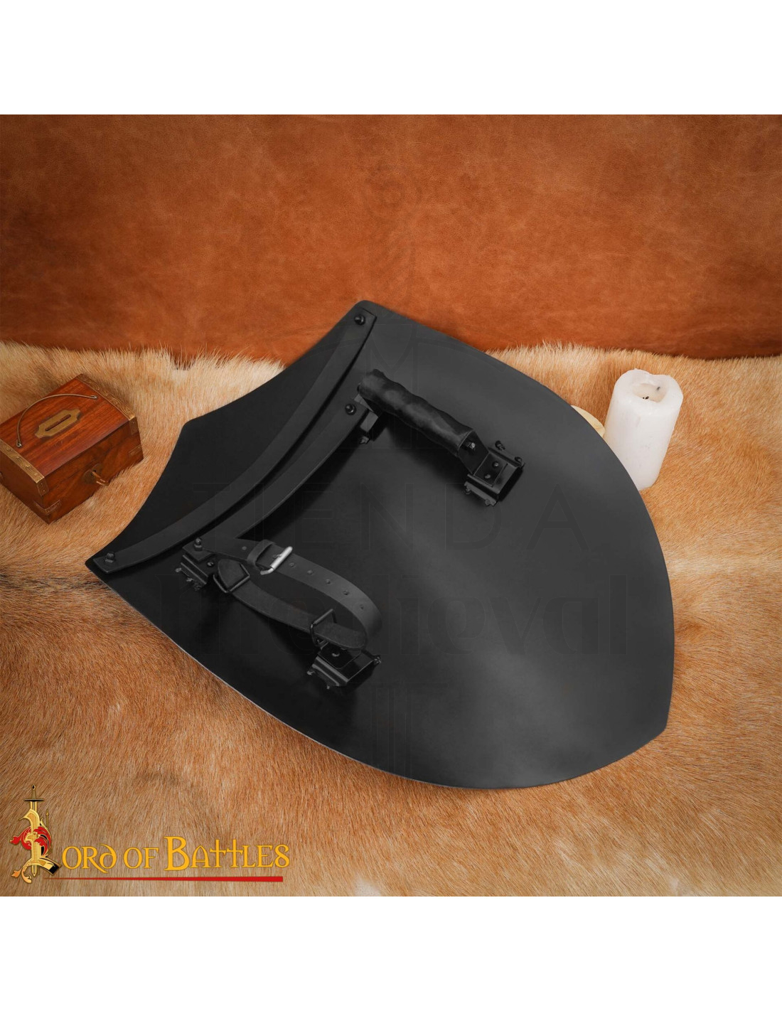 Met de hand gesmeden uit kwaliteitsstaal, is dit schild ontworpen om weerstand te bieden zonder in te boeten op hanteerbaarheid, wat het gemakkelijk maakt om mee te nemen naar middeleeuwse evenementen of als centraal stuk aan de muur geplaatst. De traditionele verwarmingsvorm maakt het mogelijk om impact effectief af te buigen, terwijl er voldoende ruimte is om emblemen en persoonlijke details tentoon te stellen.
