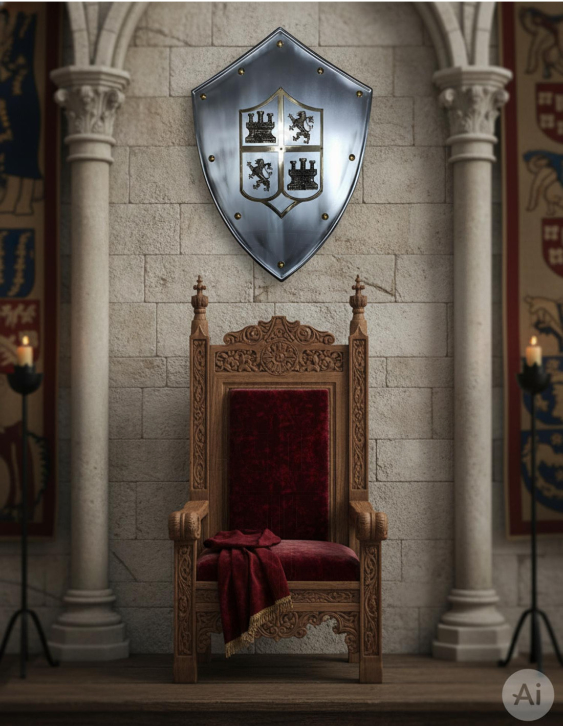 Ontdek het middeleeuwse schild van Castilla y León, een authentiek decoratief juweel dat je meeneemt naar de tijd van ridders en epische veldslagen!